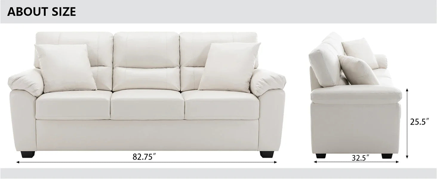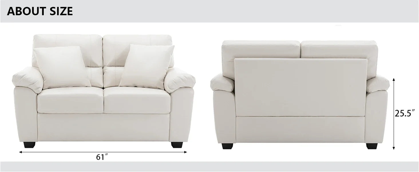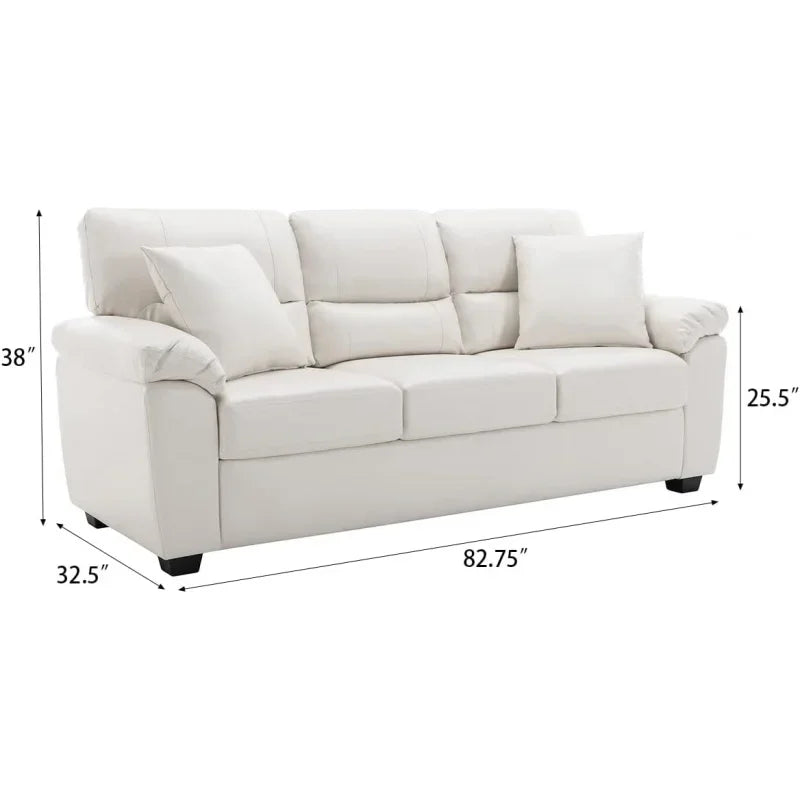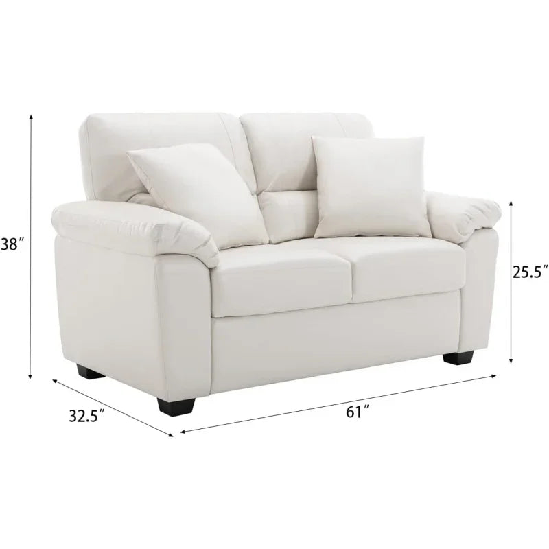 Morden Fort white leather love seat and sofa set, modern luxury and comfy furniture sleeper pouches for living room, apartment,