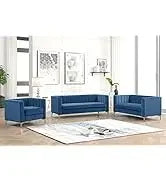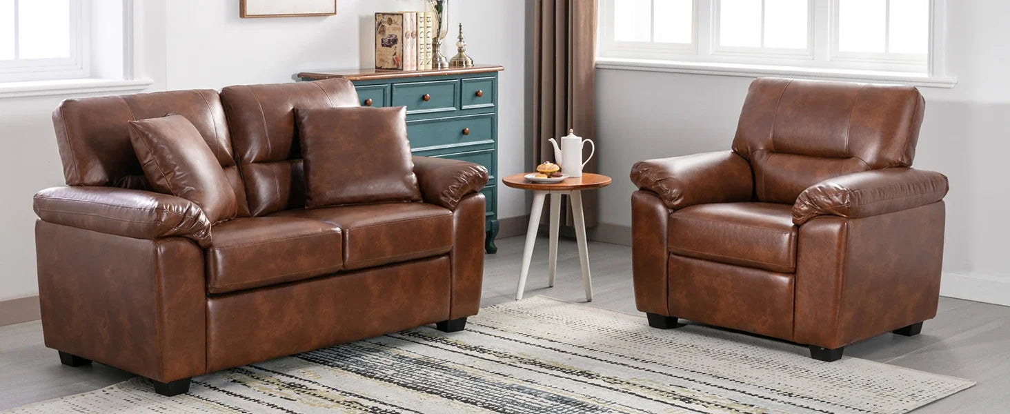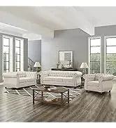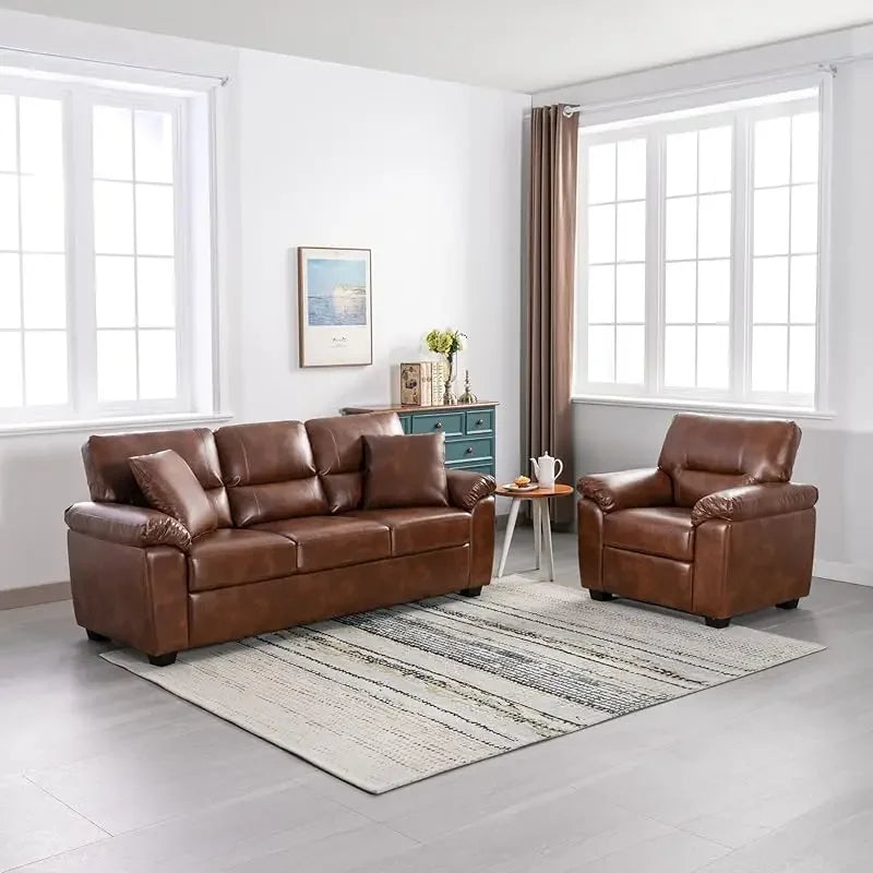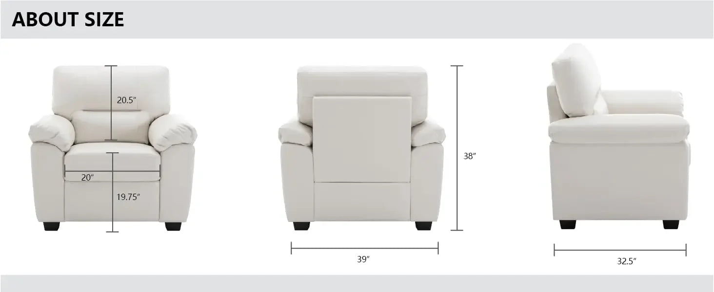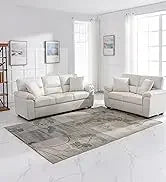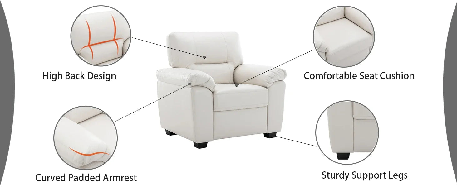 Morden Fort white leather love seat and sofa set, modern luxury and comfy furniture sleeper pouches for living room, apartment,