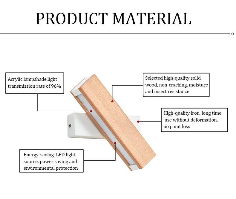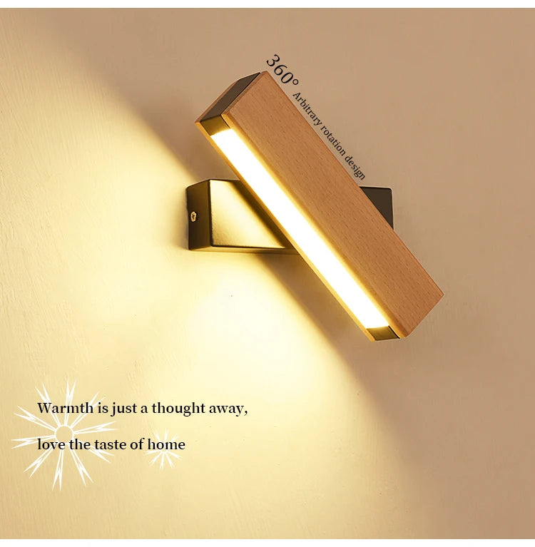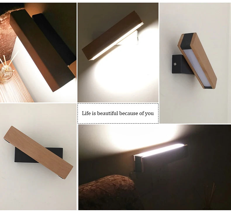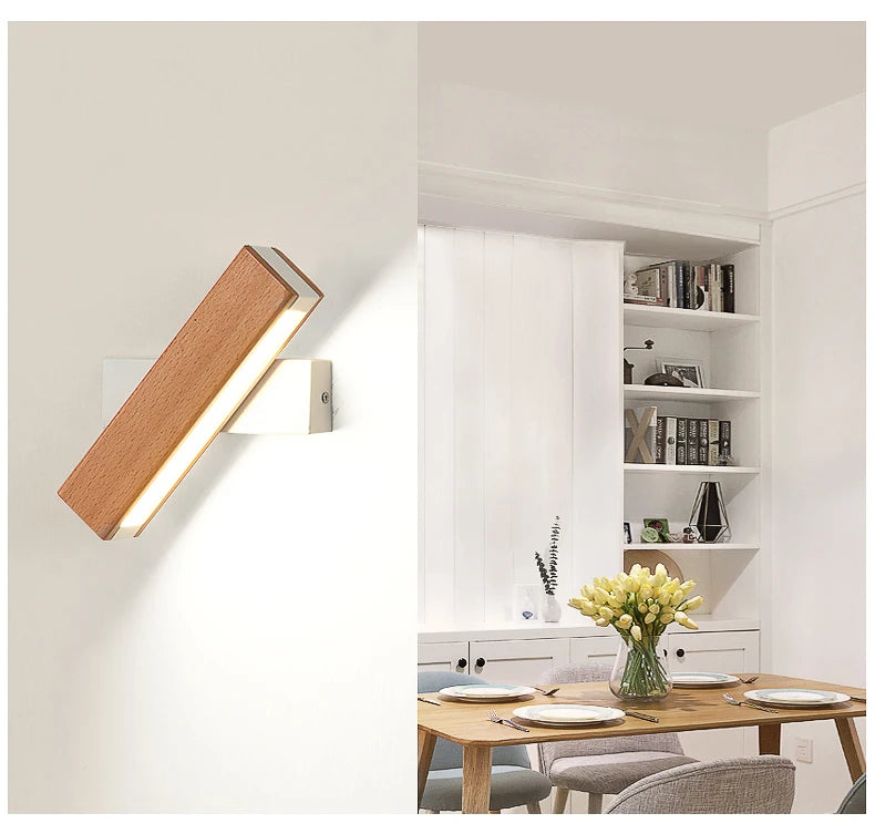 New Rotatable Wall Lamp Nordic Solid Wood LED Wall Light Simple Bedside Study Reading Adjustable Lighting Home Decor Lamps
