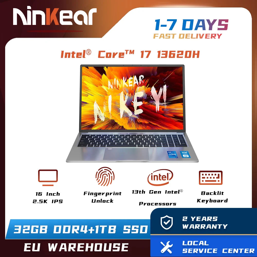 Ninkear N16 Pro Gaming Laptop 13th Intel i7-13620H 16-inch 2.5K IPS 120Hz Computer 32GB DDR4+1TB SSD WiFi 6 Fingerprint Unlock