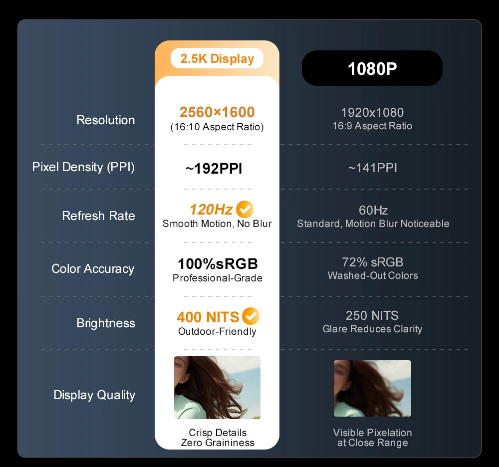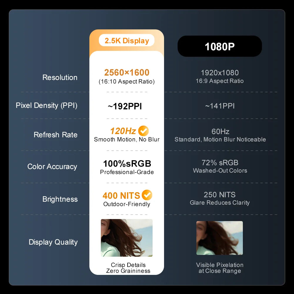 🖥️2.5K visual feast: The N16 PRO screen is 2560*1600, 16:10 display ratio, with up to 4.09 million pixels, more than twice that of 1080P. Higher pixel density and more delicate image performance can make images clearer and richer in details. The smooth high-quality experience can provide professional workers such as video editors and graphic designers with a larger work space and more delicate details, bringing you a different artistic creation experience.