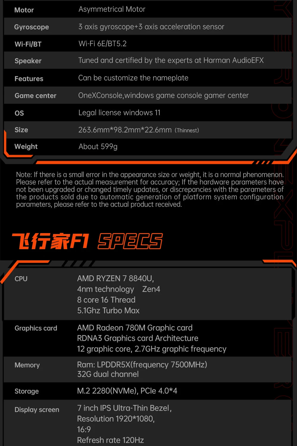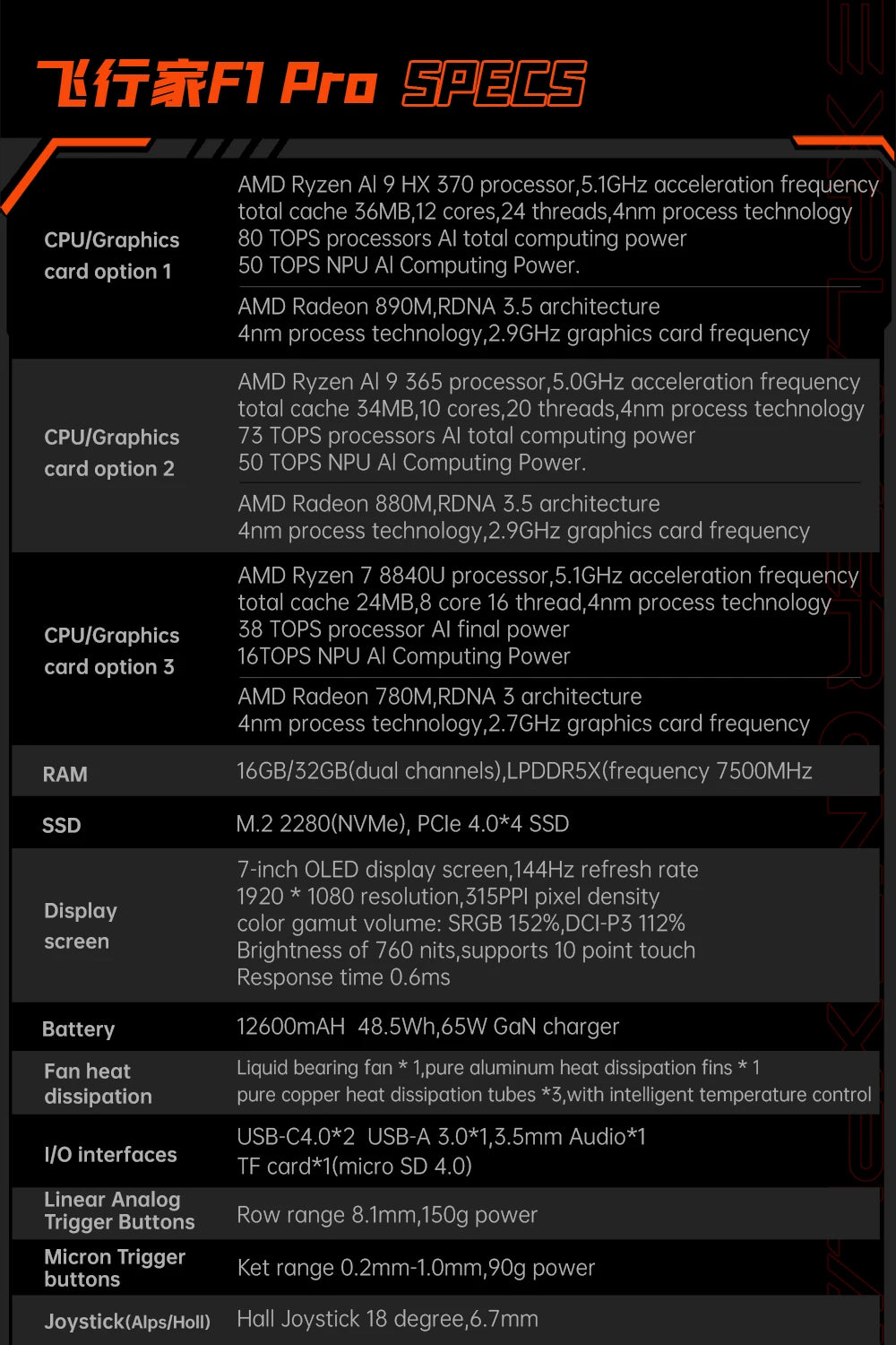 OneXPlayer OneXFly F1 Pro AMD AI 9 HX 365 370 OLED 144Hz Screen Gaming Handheld Console 3A Gamepad 7” PC Game Computer Laptop