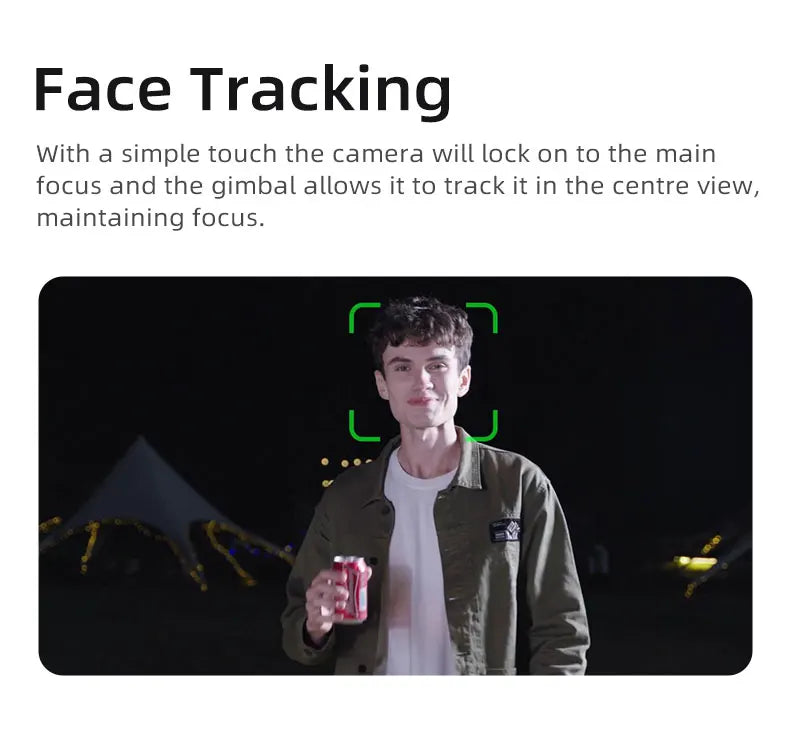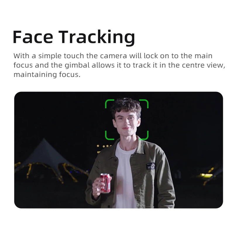 3-axis anti-shake: Pan following, Tilt following, All locked, Face tracking, All following, PTZ speed