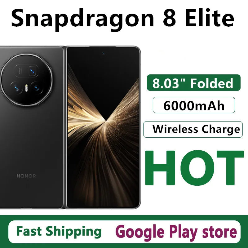 Original Honor Magic V5 Mobile Phone 6000mAh Battery 8.03" Folded Screen Wireless Charge 50.0MP Camera Snapdragon 8 Elite OTA