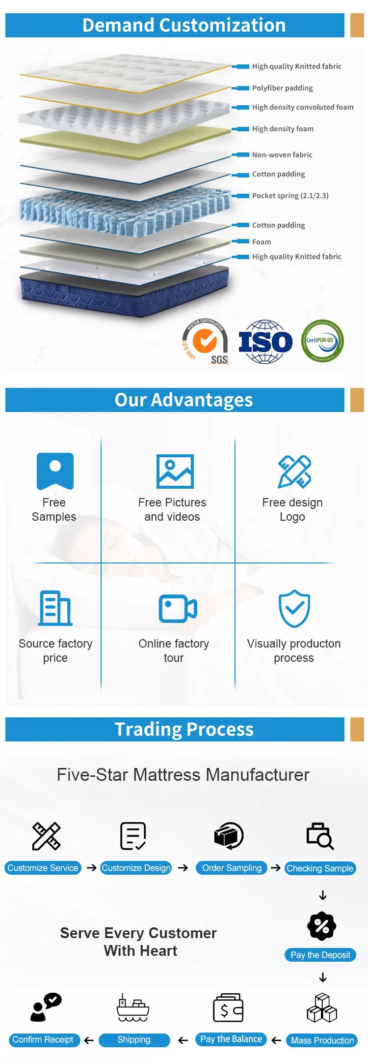 The mattresses we produce are made of high-quality materials, strict quality control management system, we provide high-quality and cost-effective mattresses, not the lowest price and cheap high-quality products.