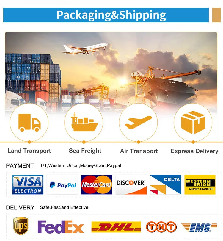 We accept (RMB) Yuan or USD. Additional fees may apply, please contact us for details. Payment methods include Cash, L/C, D/A, D/P, T/T, Western Union, MoneyGram, PayPal, Alipay.
