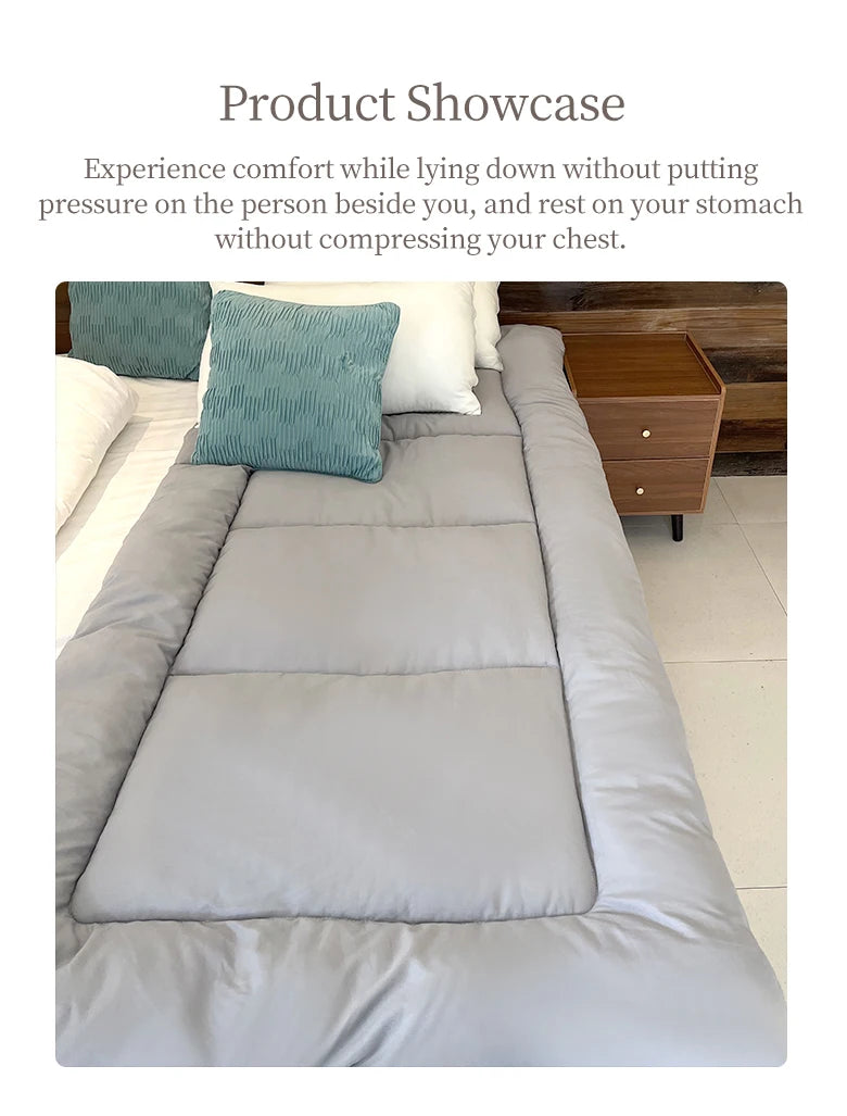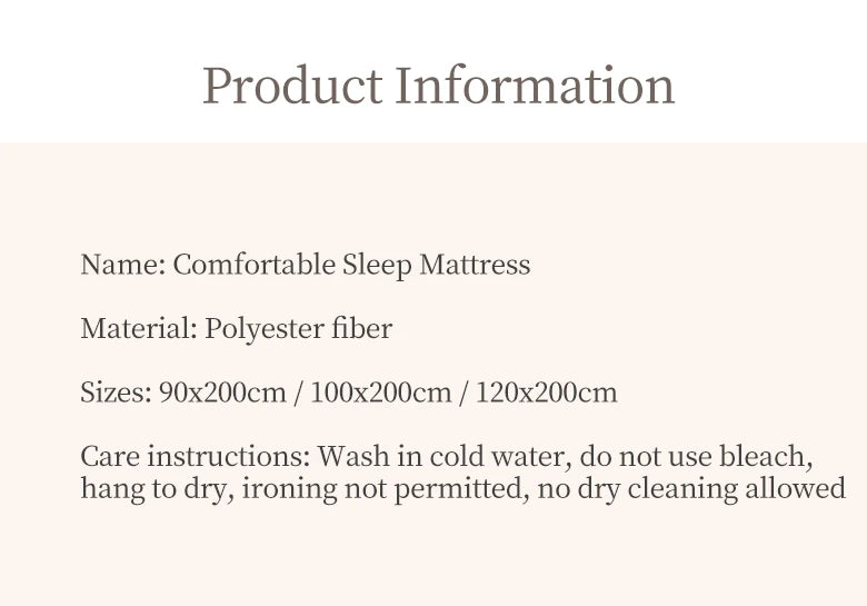 3: Experience comfort while lying flat, with no pressure on the body when sleeping on your side, and no pressure on the chest when lying face down. This mattress features a thick, skin-friendly fabric, a full layer of feather cotton, and a full layer of firm fixed cotton.