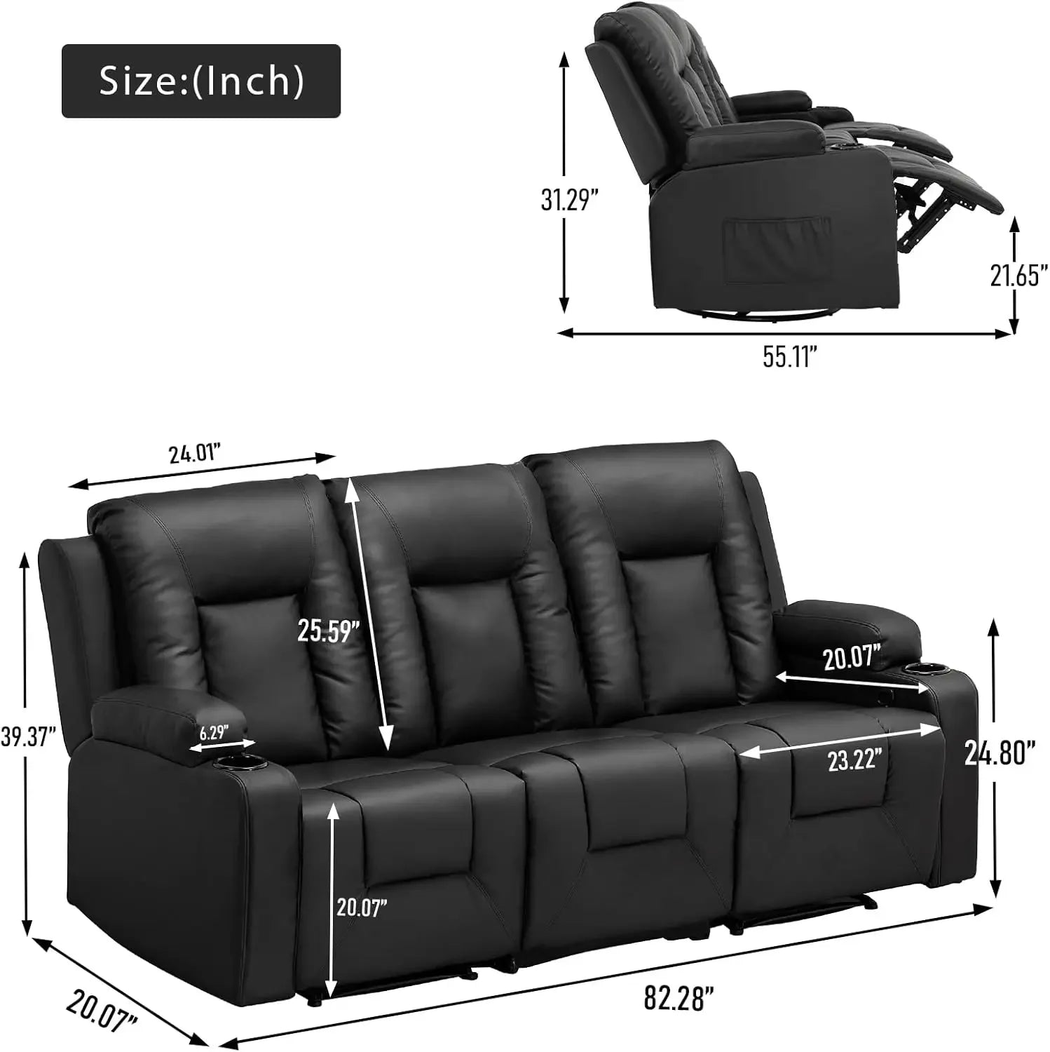 - 【Luxurious Comfort】 This sofa set offers reclining, rocking, massage, heating and swivel functions (only single seat has rocking, massage, heating and swivel functions). Dimensions: 37.4 x 35.8 x 40.94 in. Comfortable padding for comfort and support where it's needed most This model offers soft padding, excellent lumbar support and a full upholstered seat.