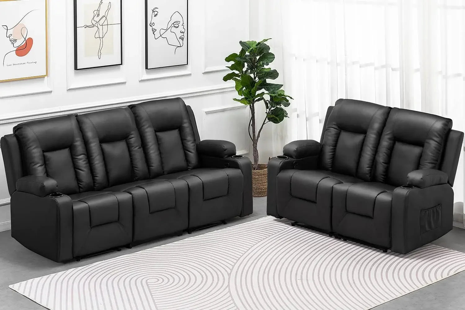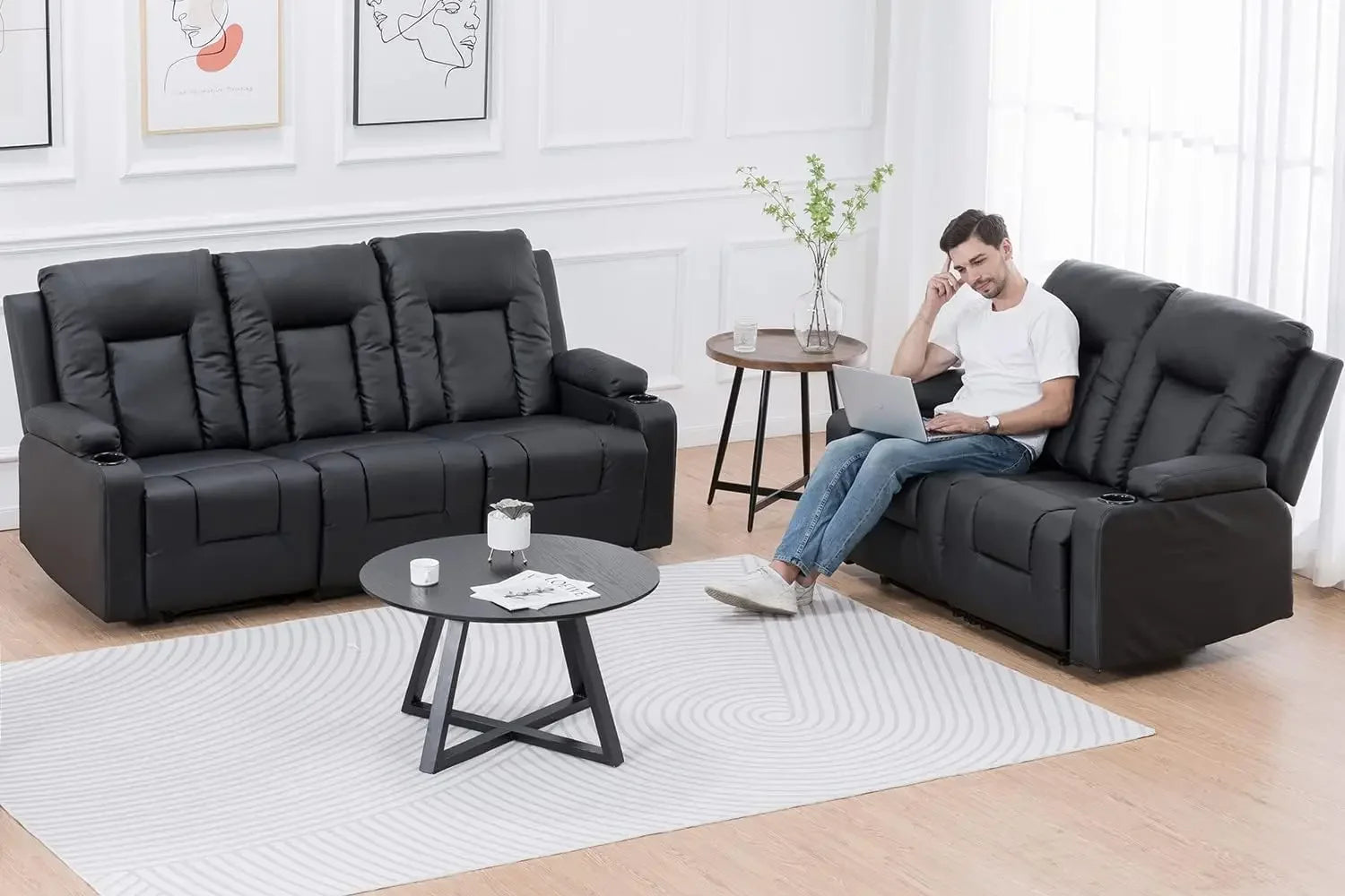 Recline Chair Set,Furniture 2PC Bonded Leather Recliner Set Living Room Set Sofa Loveseat BlackLiving Room Set 3+2