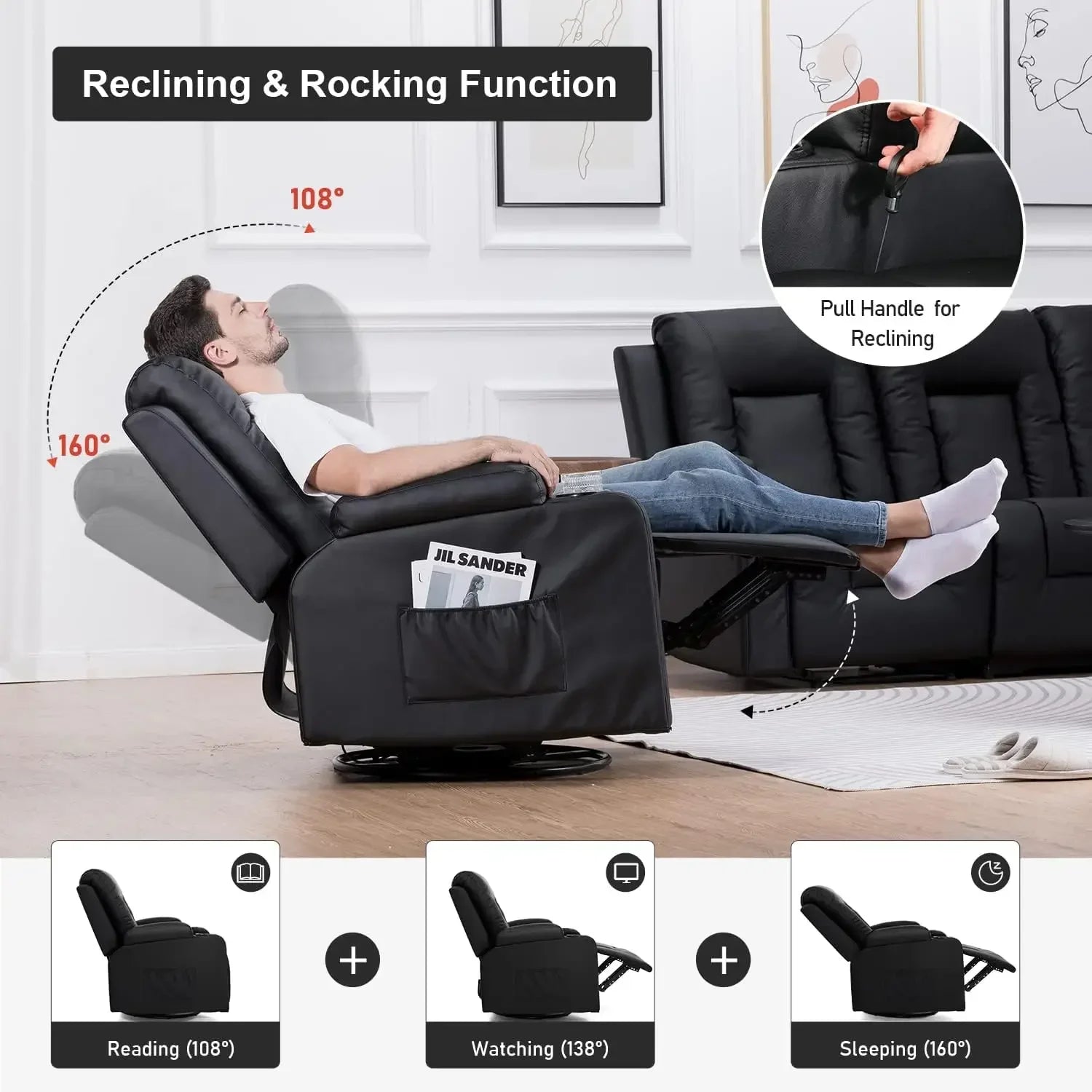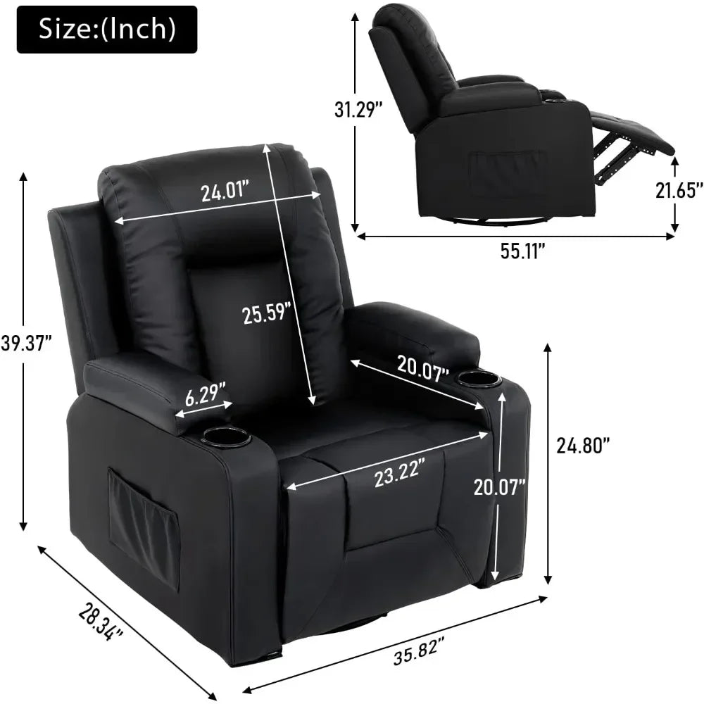 - 【Luxurious Comfort】 This sofa set offers reclining, rocking, massage, heating and swivel functions (only single seat has rocking, massage, heating and swivel functions). Dimensions: 37.4 x 35.8 x 40.94 in. Comfortable padding for comfort and support where it's needed most This model offers soft padding, excellent lumbar support and a full upholstered seat.