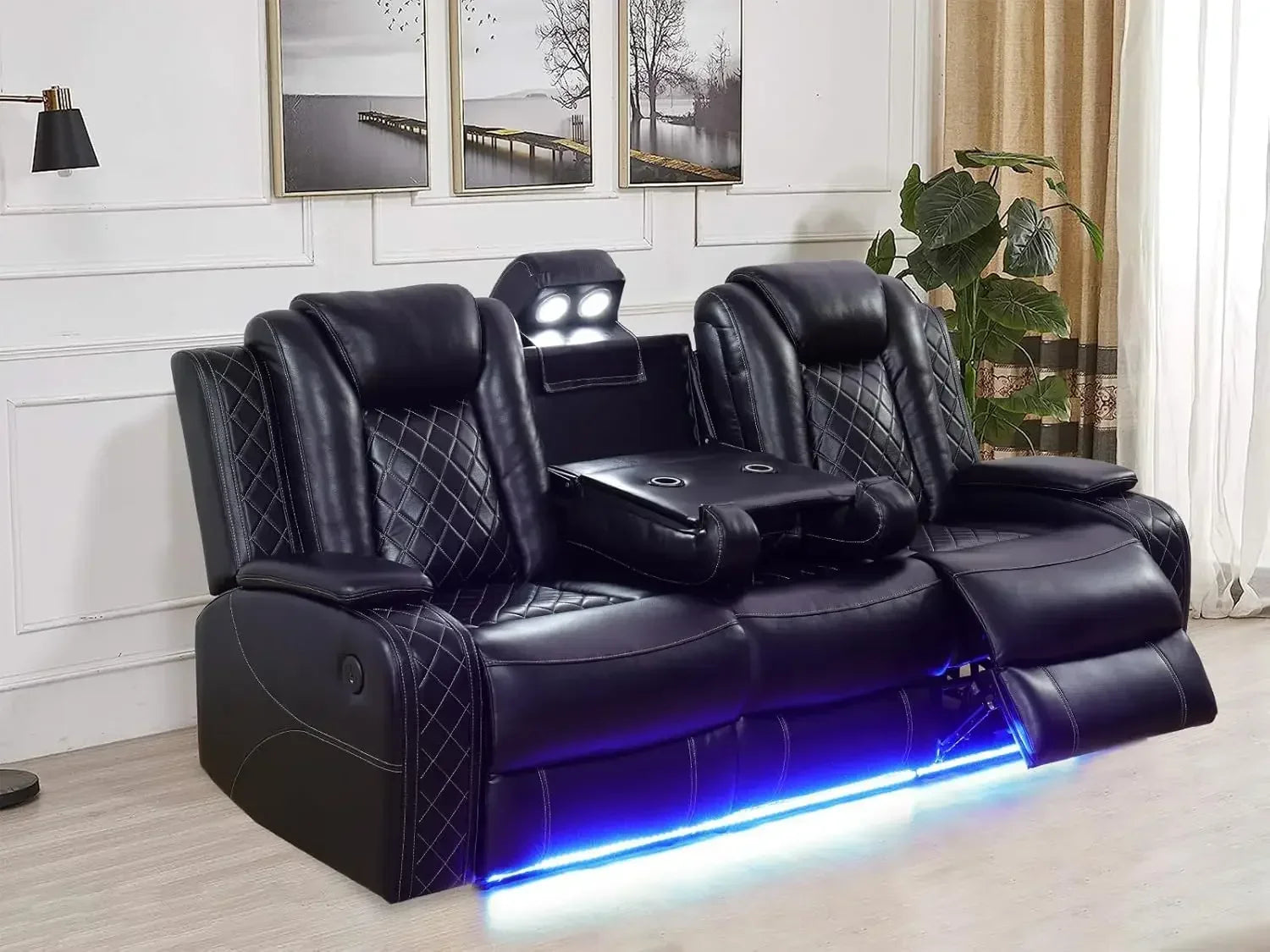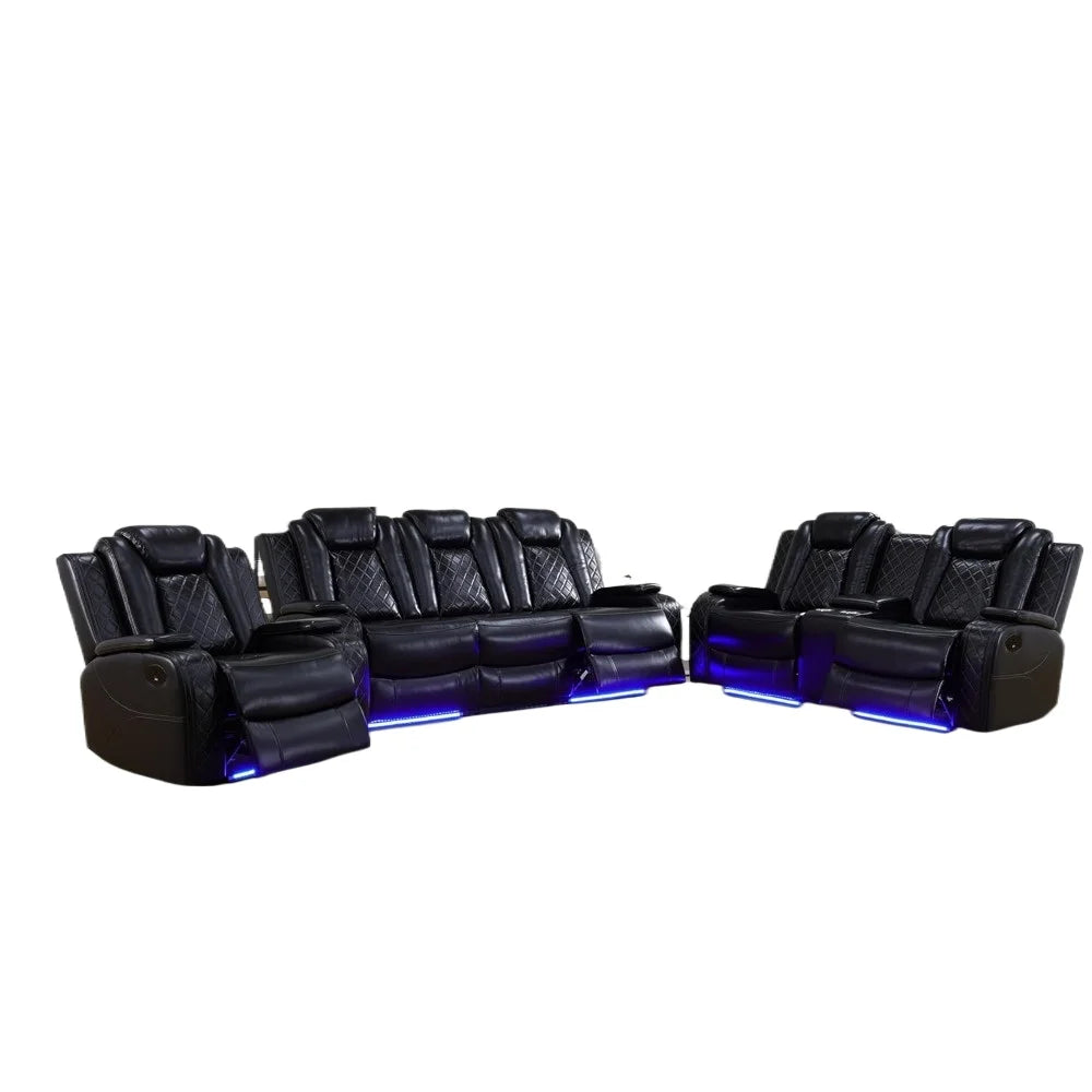 Recliner Sofa Set with LED Lights,Leather Living Room Furniture Set with USB Port/Storage Console/Cup Holders,Reclining Sofa Set