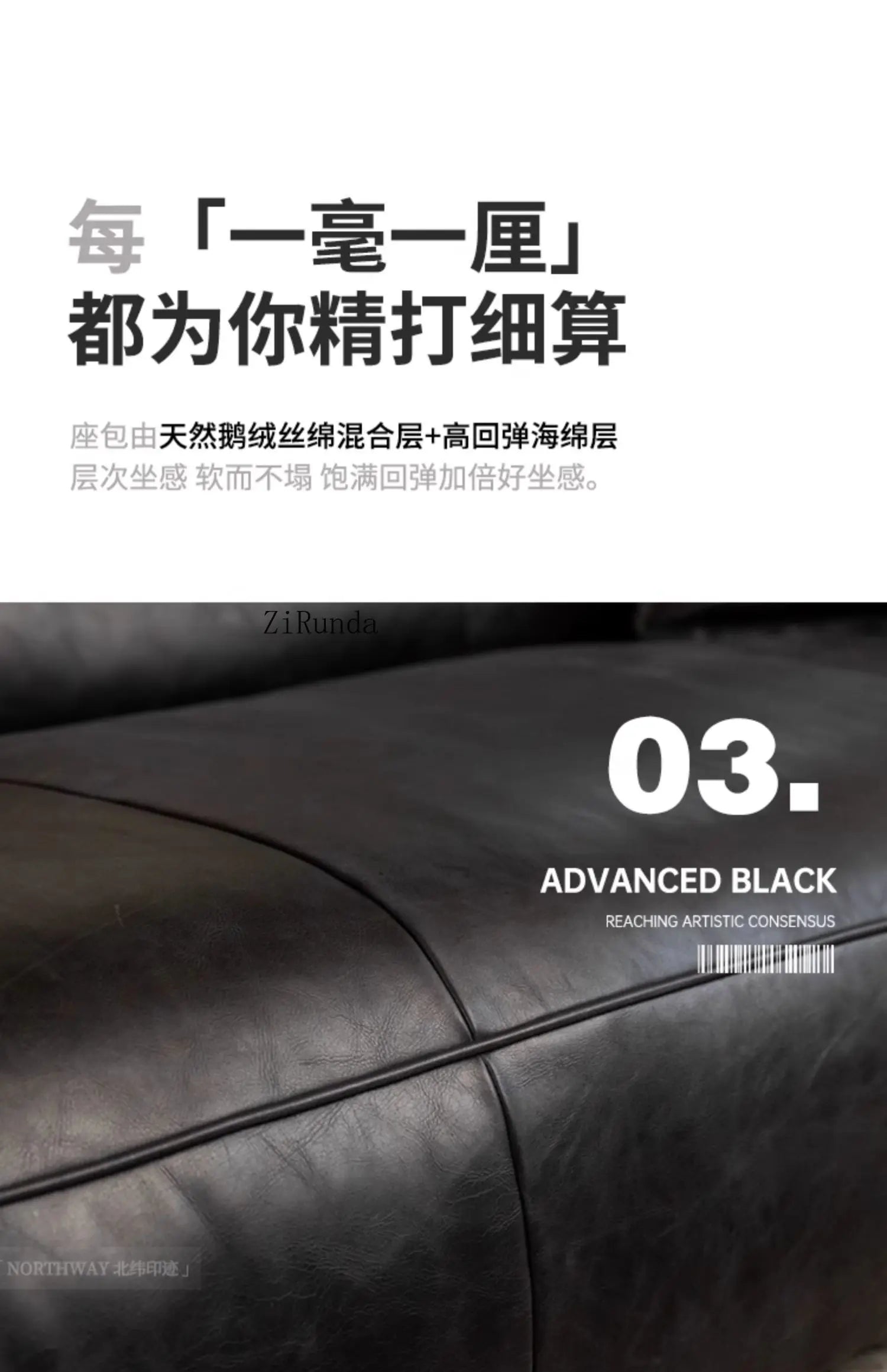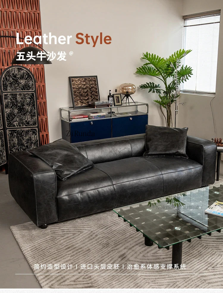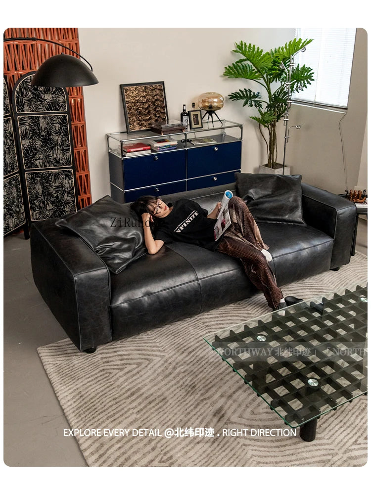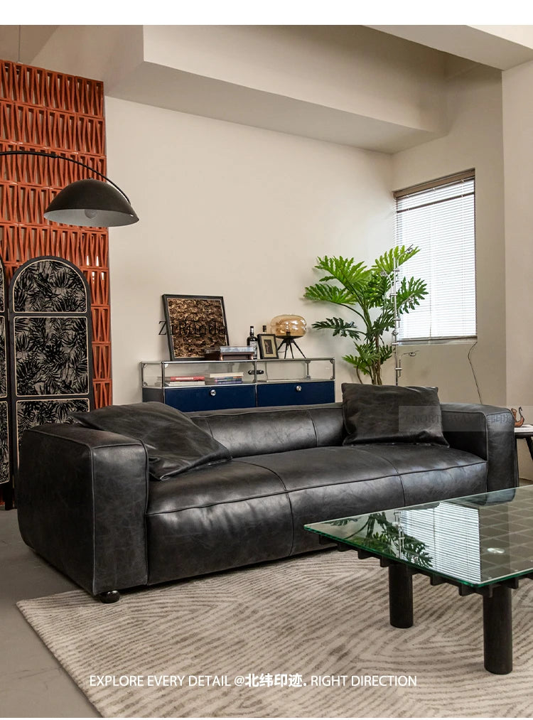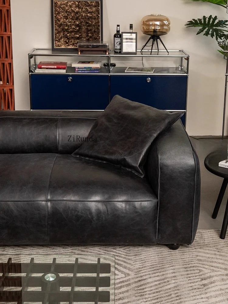 Retro all leather wabi sabi antique sofa Italian living room simple
