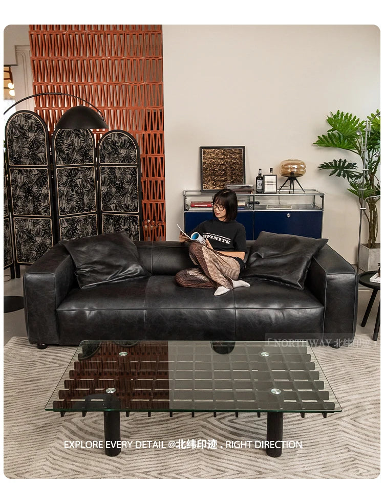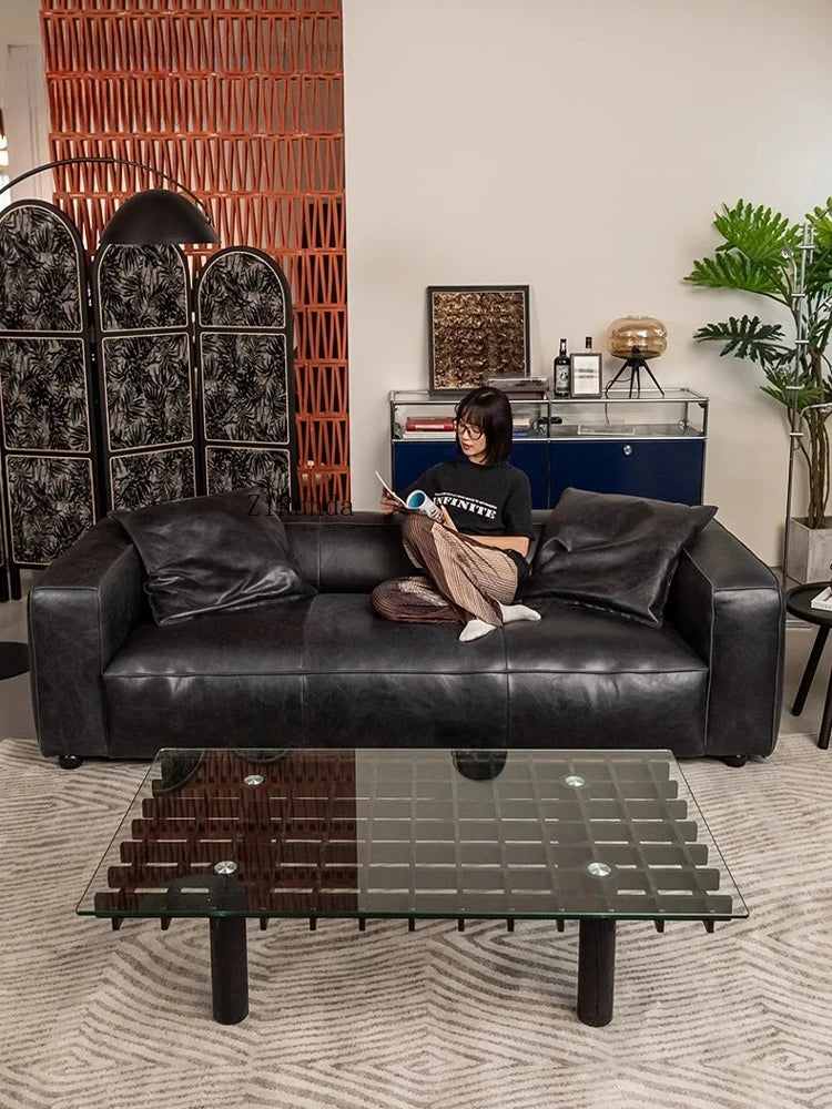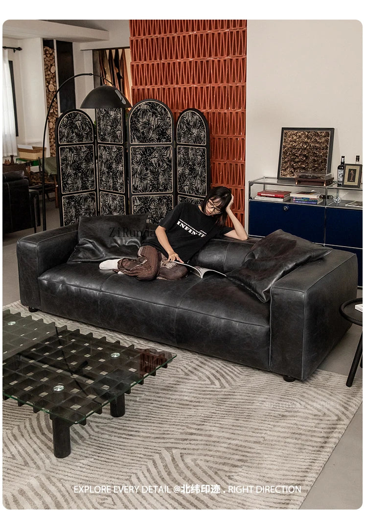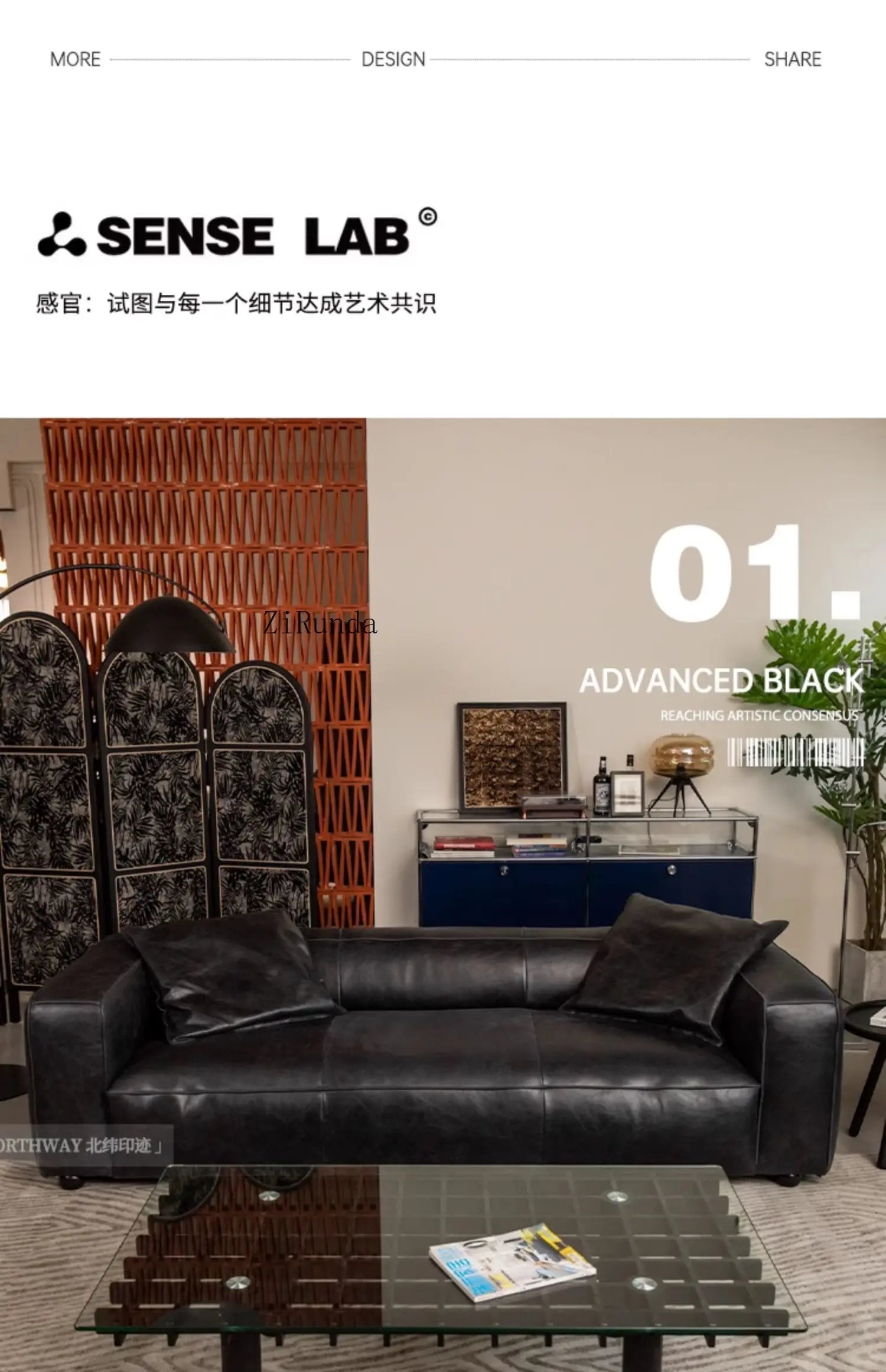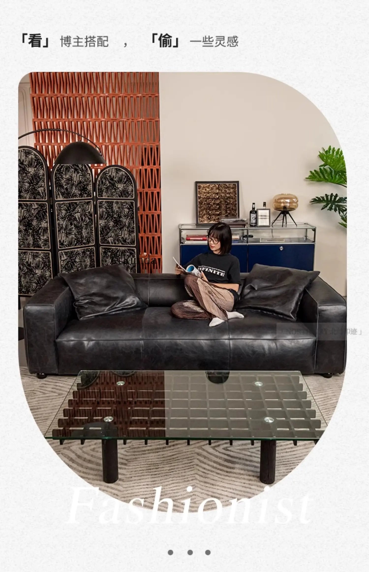 Retro all leather wabi sabi antique sofa Italian living room simple