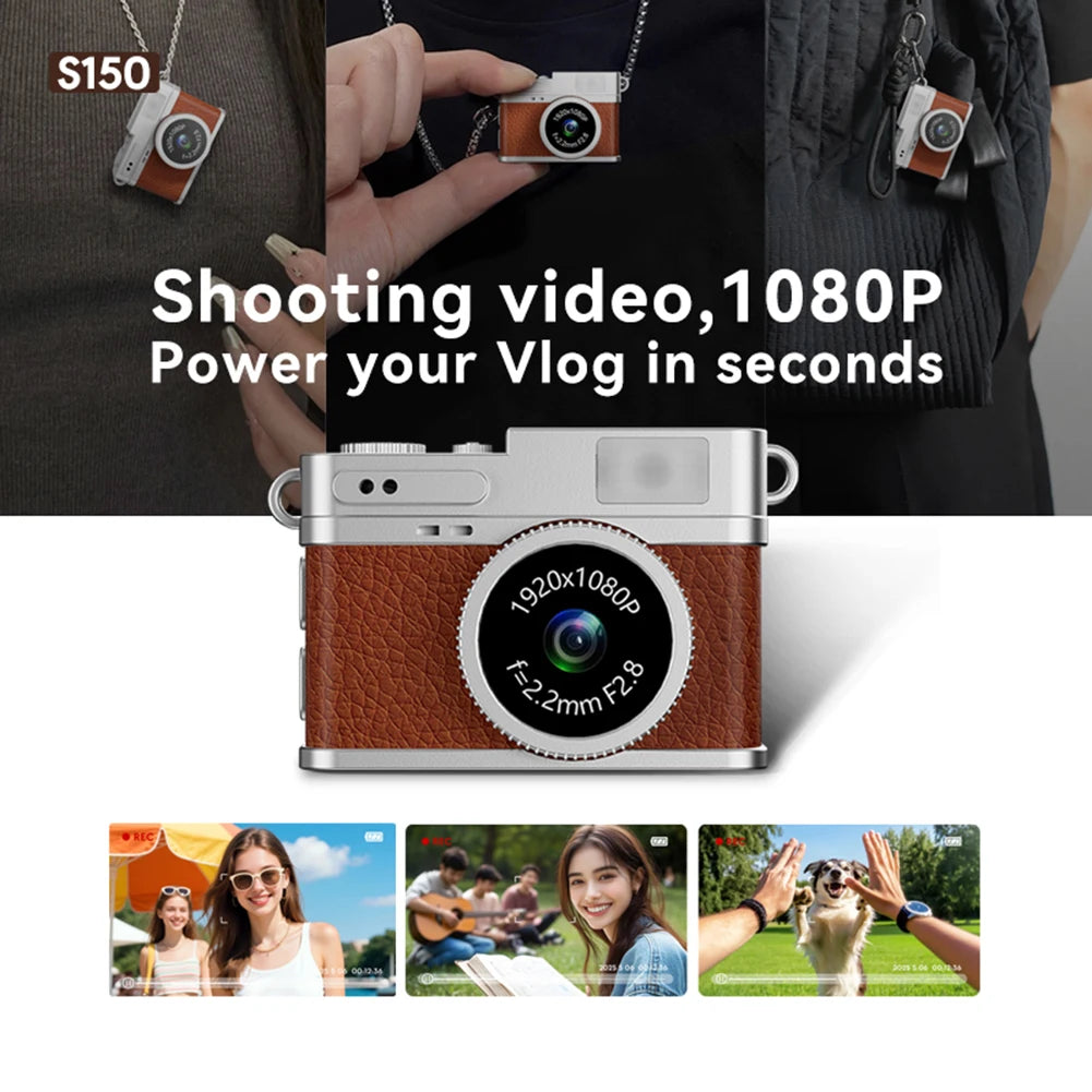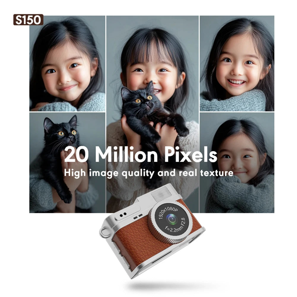 S150 Retro Digital Camera Mini Video Cam Photography Point Camera 1080P Pocket Video Recorder with LED Flash Light for Kids Toys