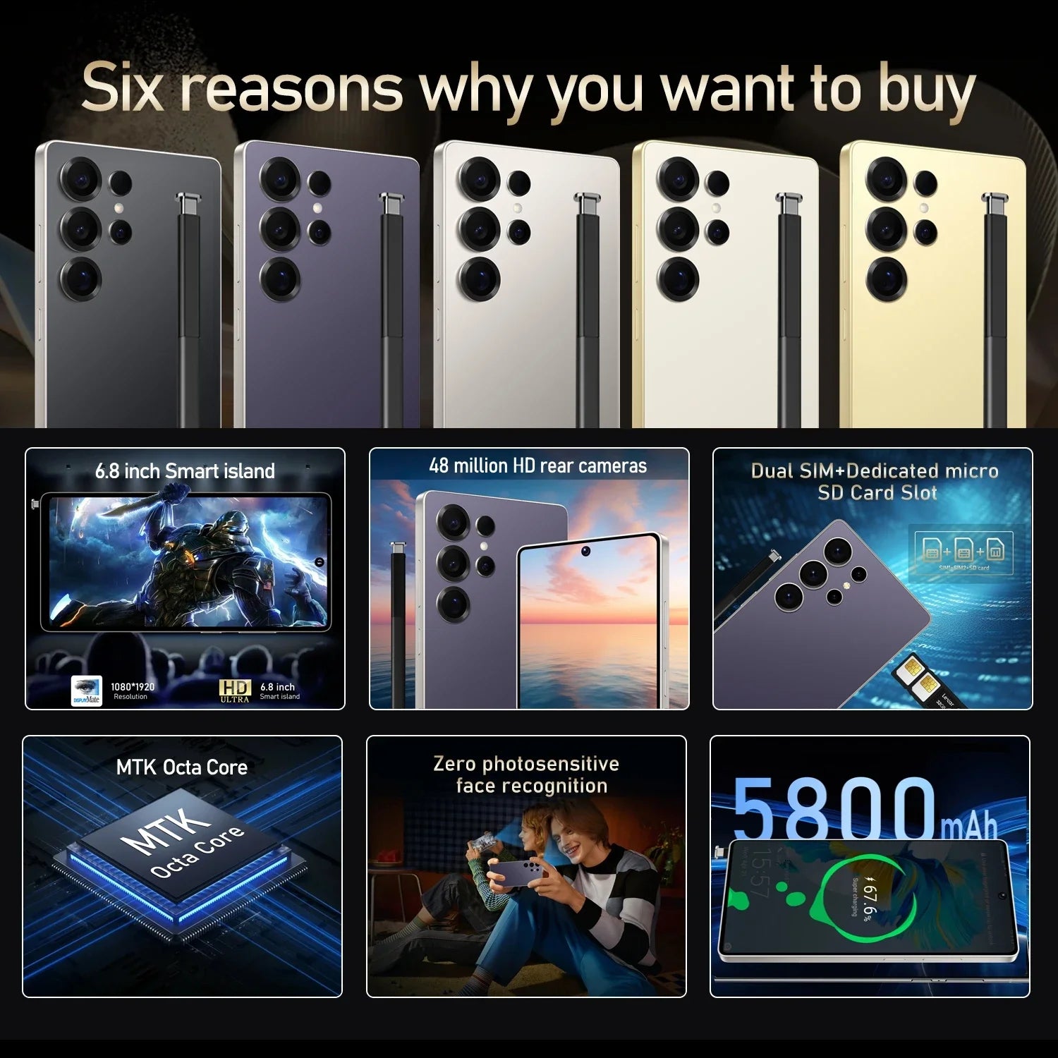 Global Version I16 Pro Max Smartphones Cellphones Android 14,6.8 inch Screen,12+512GB,13+24MP,Mobile phone,6800mAh Phone 5G