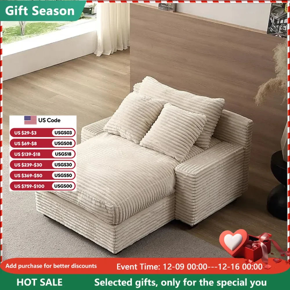 Singel Chaise Lounge Chair with Thicked Cushions,Comfy Corduroy Upholstered Indoor Leisure Sofa Recliner,Sleeper Couch Bed