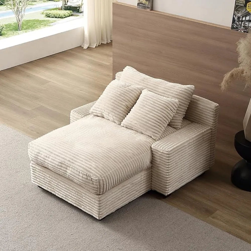 - Comfortable Corduroy Upholstered Chaise Lounge⚡Adequate polyester fiber filling is wrapped in soft corduroy, and its plush and fluffy design makes it different from other seat cushions. Its thickness and fluffiness create a more indulgent and comfortable seating experience. Sitting on it is like being wrapped in clouds, allowing your exhausted body to relax endlessly after a day of exhaustion.