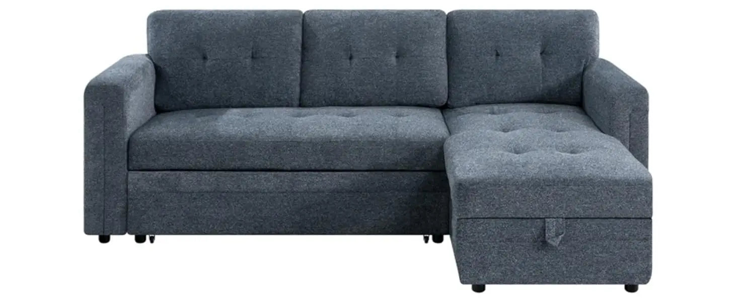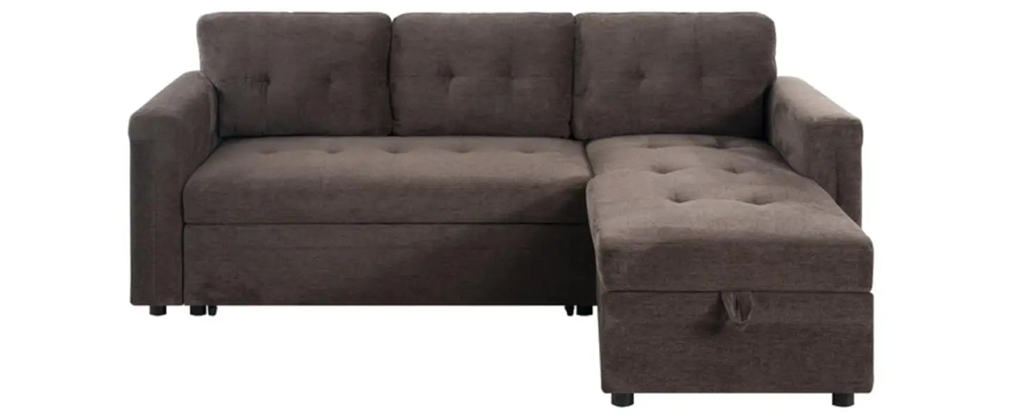 Introducing our versatile Sectional Sofa with sleeper feature. Easily pull out the couch bed for added convenience. Ample seating and storage chaise.