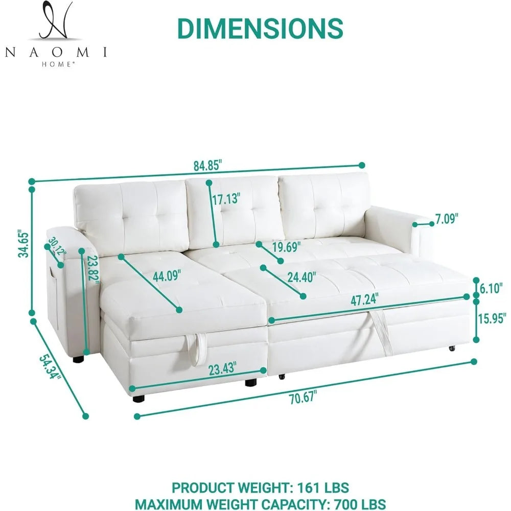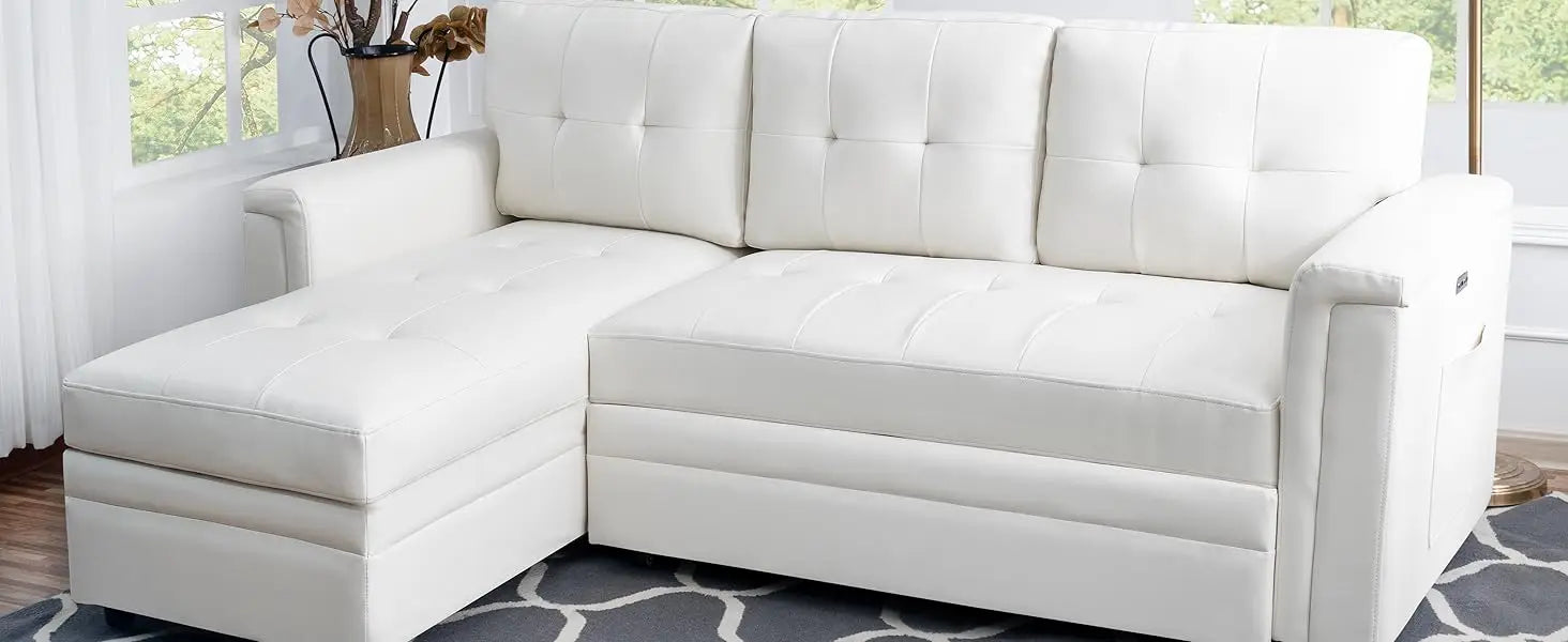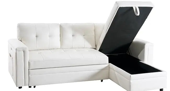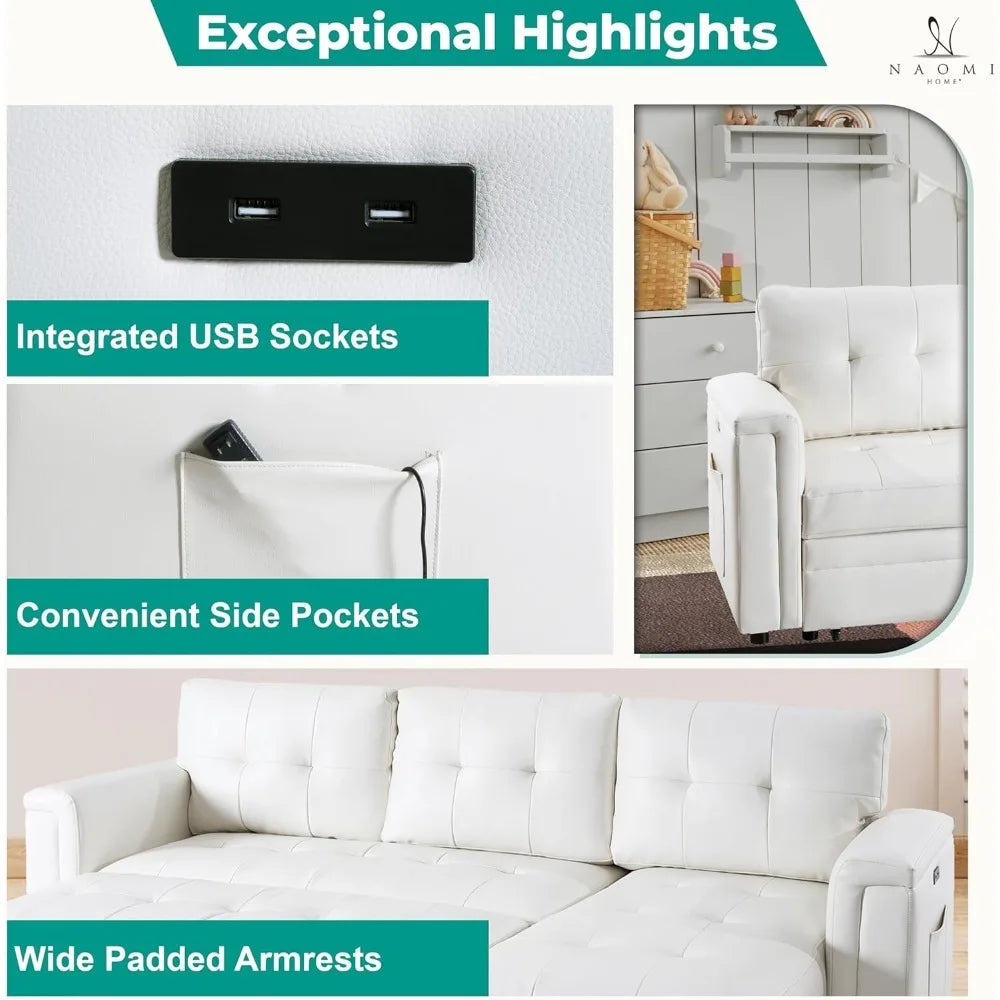 Sofa Beds, with USB Ports-L-Shaped Couch Convertible Pull-Out Bed,Timeless Design,Sturdy Construction, Air Leather Sofas
