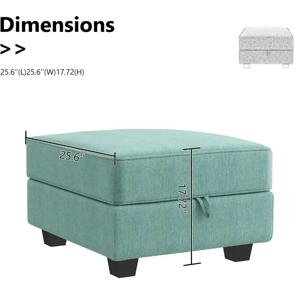 Square Ottoman Module for Modular Segmented Sofas, Storage Ottoman Footstools, and Seat Cubes, Water Blue
