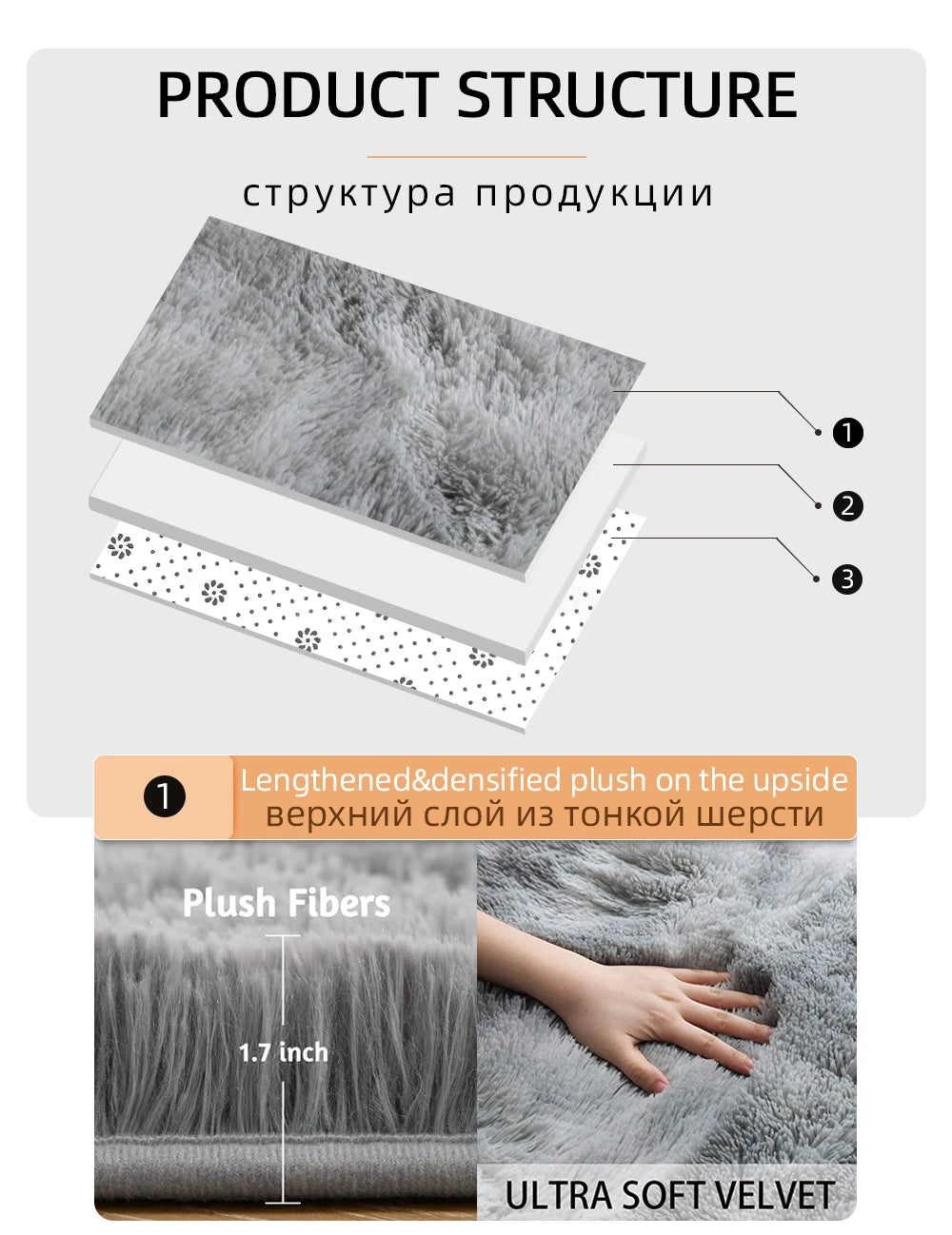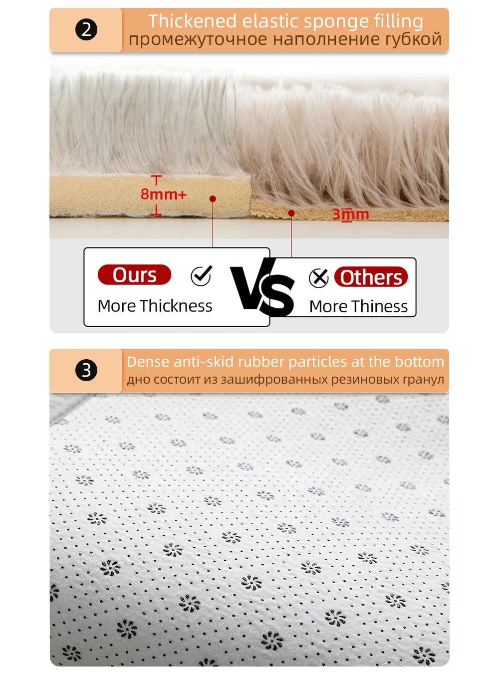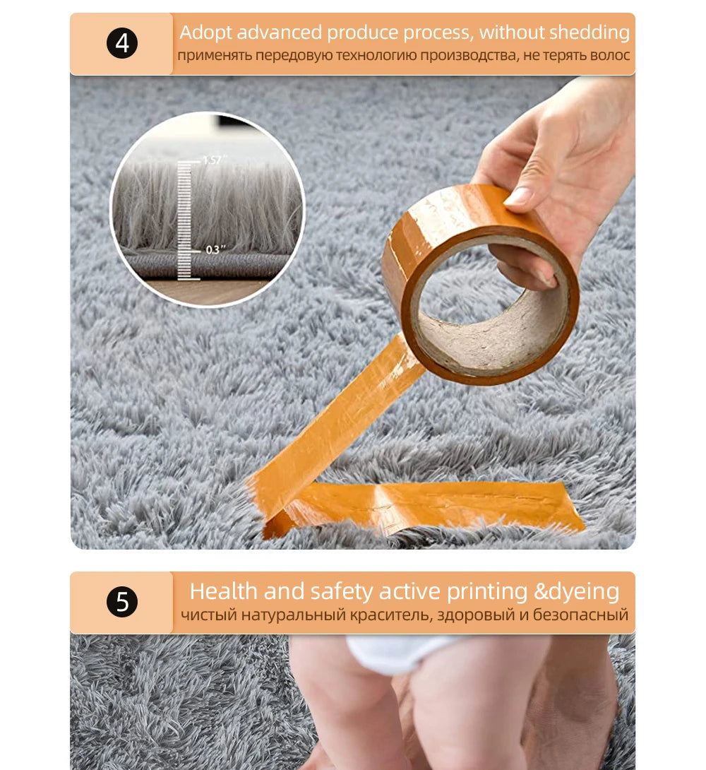 1.Our fluffy carpet is designed and developed by our own factory to provide high-quality goods for Amazon, aliexpress and other cross-border platforms. The product is made of high-quality materials. 4cm long and dense plush, soft and comfortable to touch, and the bottom is filled with 0.8cm thickened elastic sponge and rubber, which is anti-skid and comfortable, really high quality no shrinking, no shedding, no fading. so It is an essential choice for high-quality carpets, provides a tranquil refuge for your family to rest their body and mind after a hectic day.