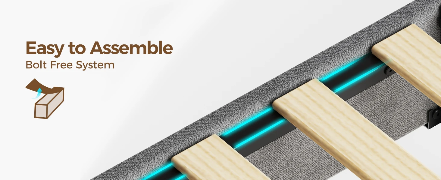 1 Charging Station 2 Upholstered Velvet Fabric 3 Under Bed Storage 4 Easy to Assemble 5 Stable Structure