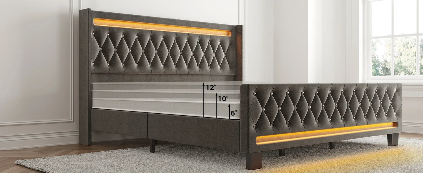 Component Contains Package: Headboard / Footboard / Metal Slat Platform / Wood Slats / Light Strips / Accessory Bag / Assembly Tool / Instructions