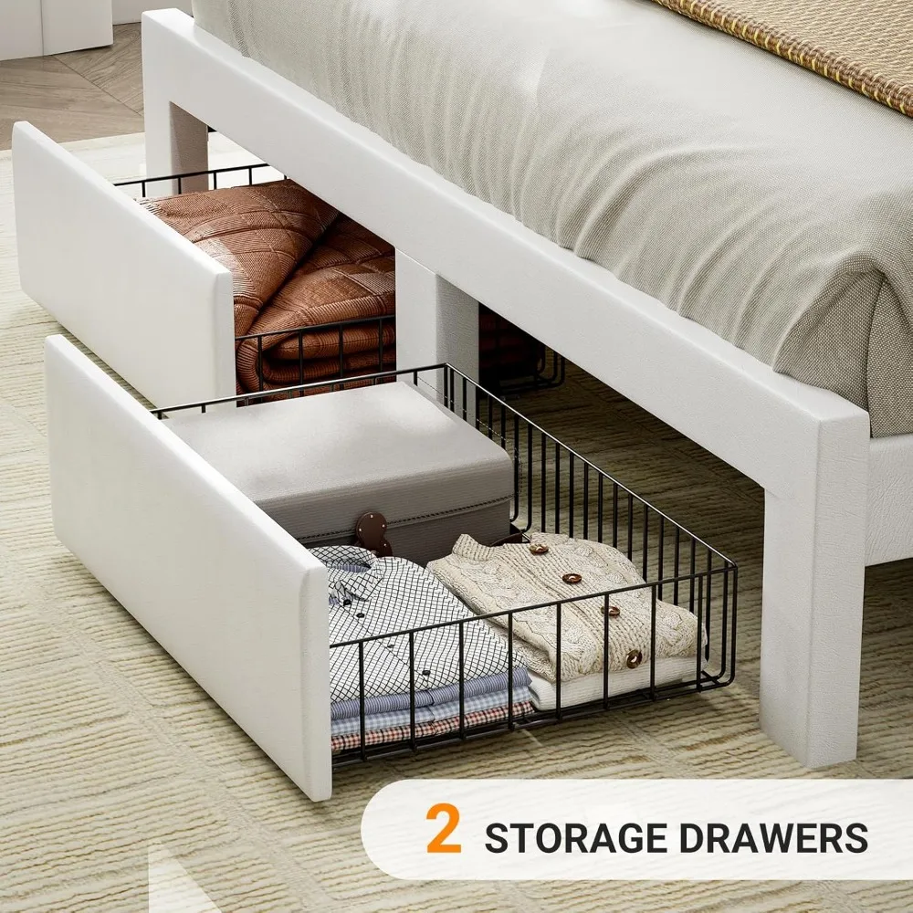 Upholstered Bed Frame Queen Size with Headboard with Storage Drawers & Charging Station,No Box Spring Needed/Heavy Duty
