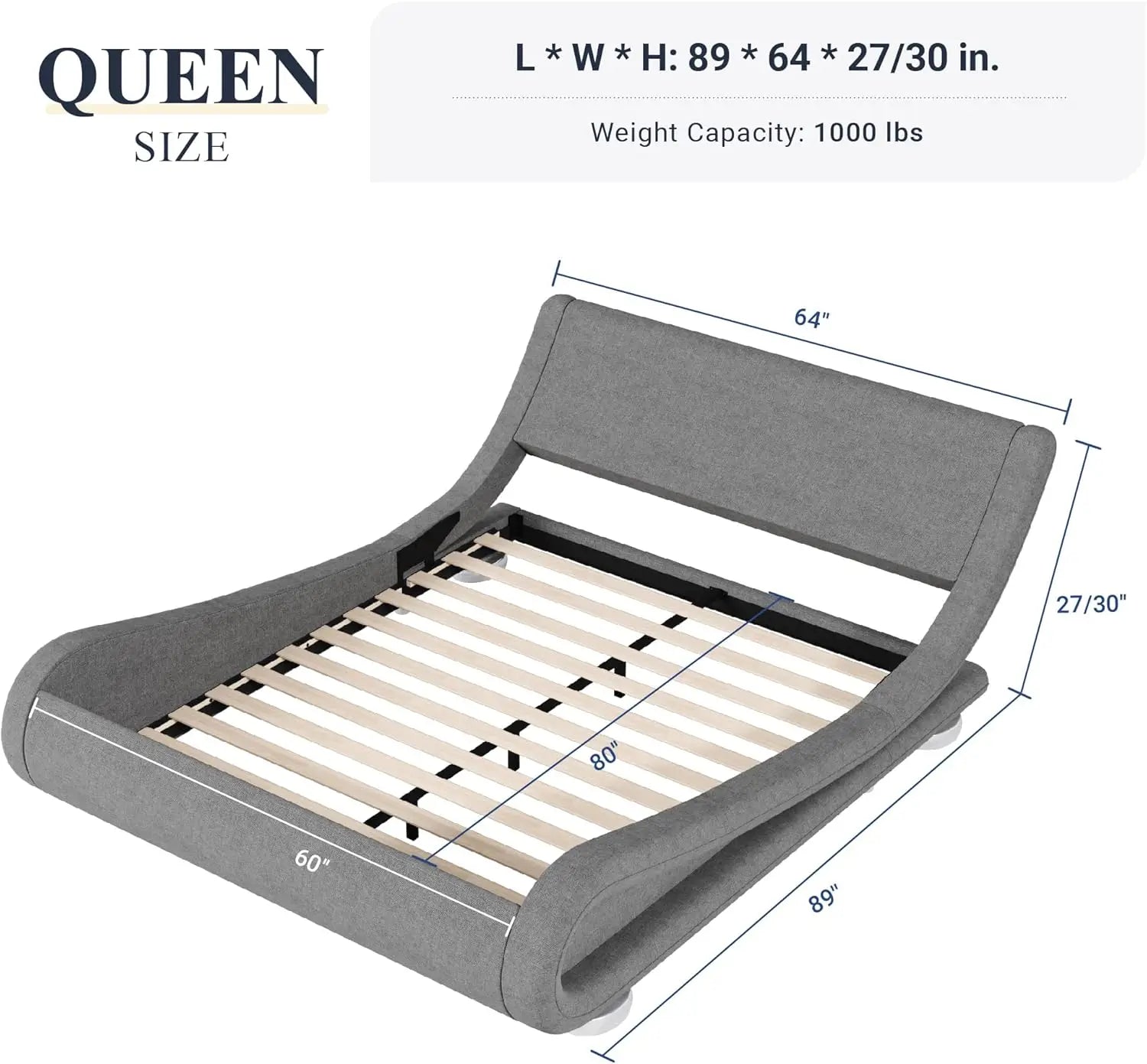 Upholstered Platform Bed Frame with Ergonomic & Adjustable Headboard, Modern Low Profile Sleigh Design