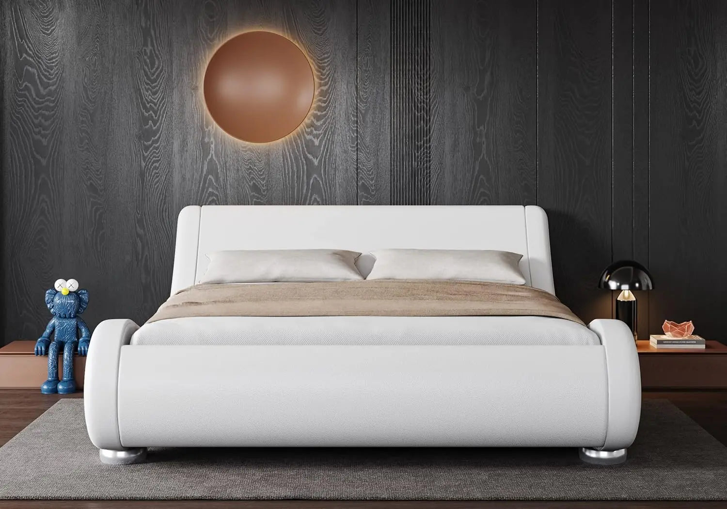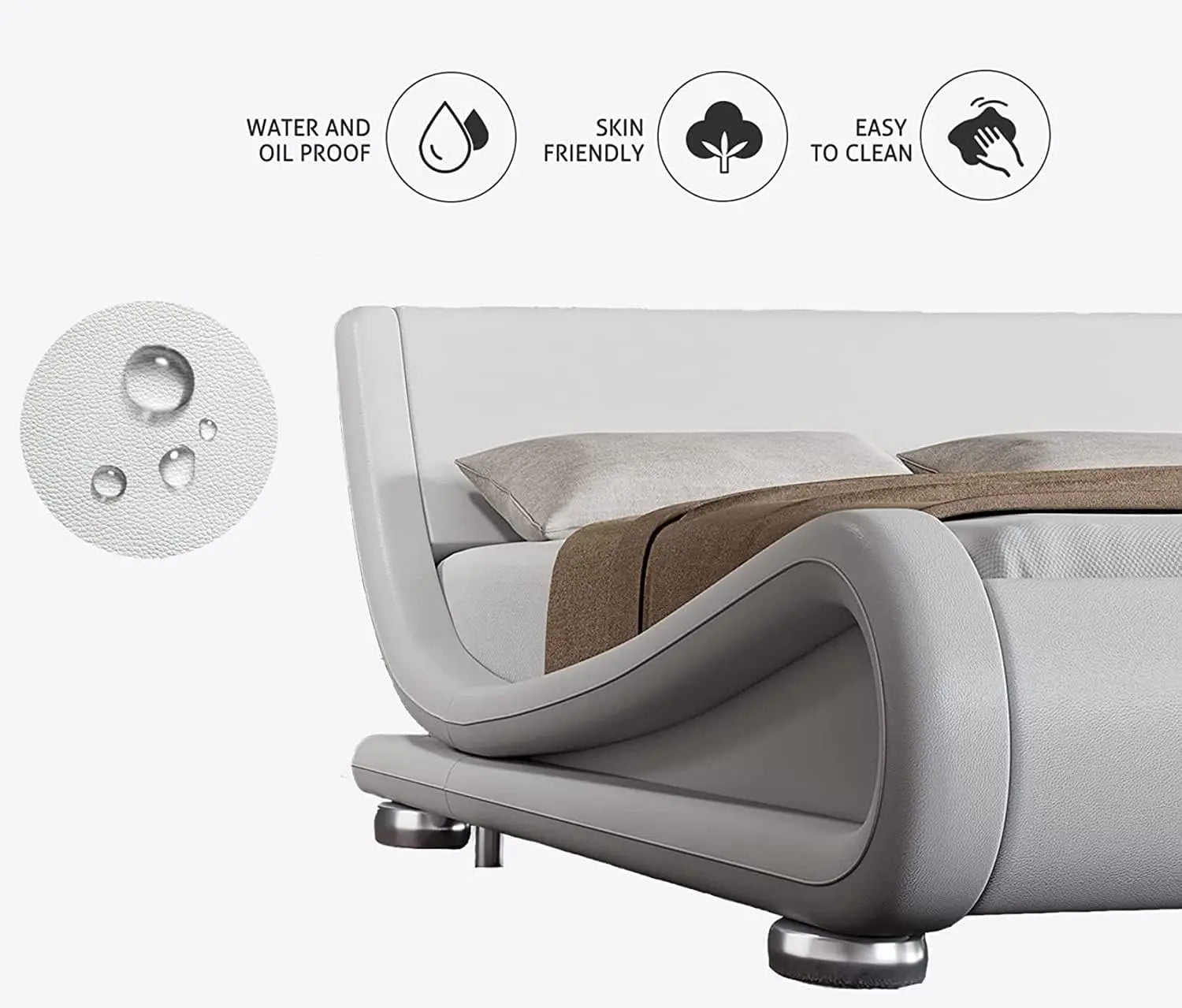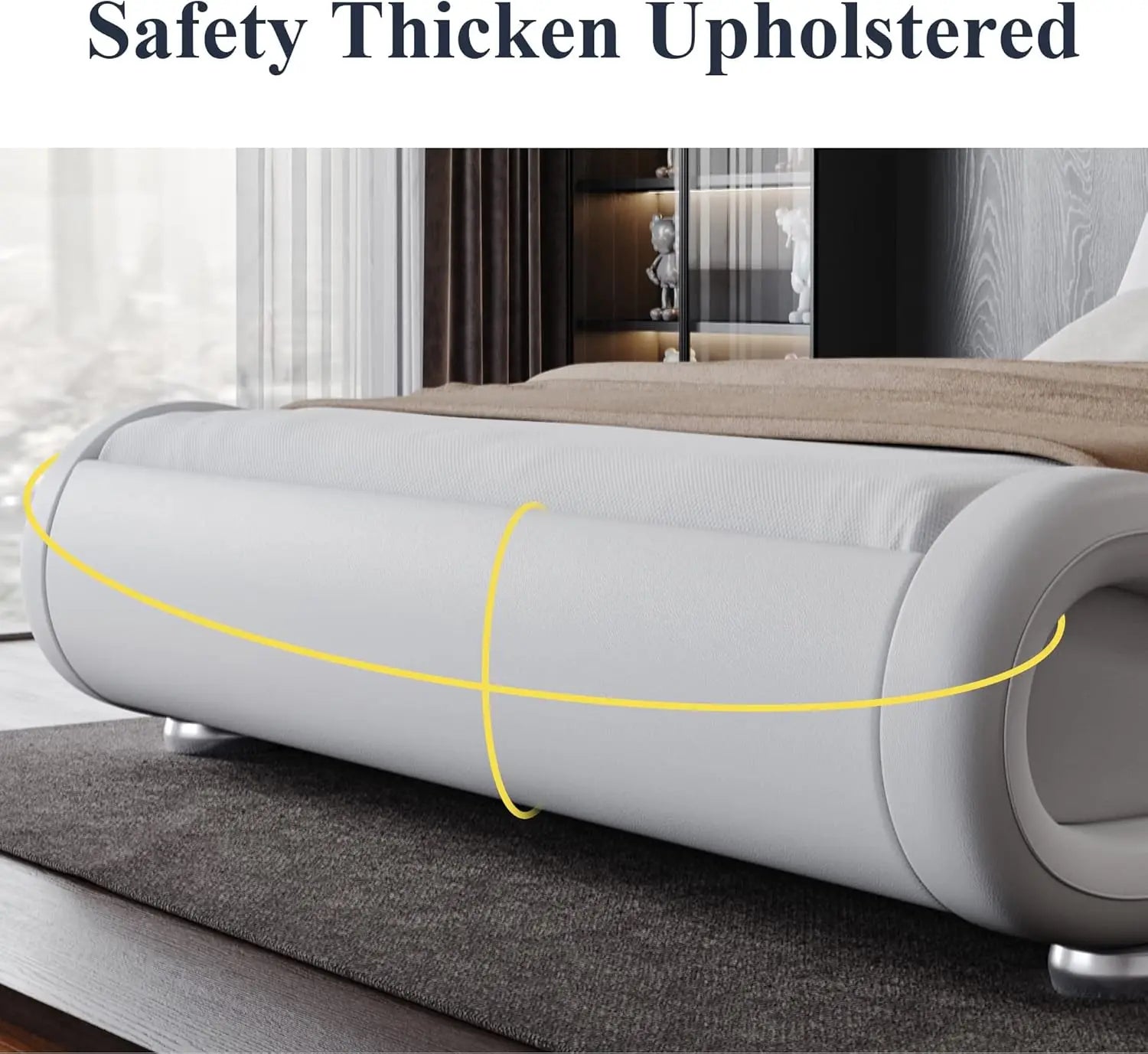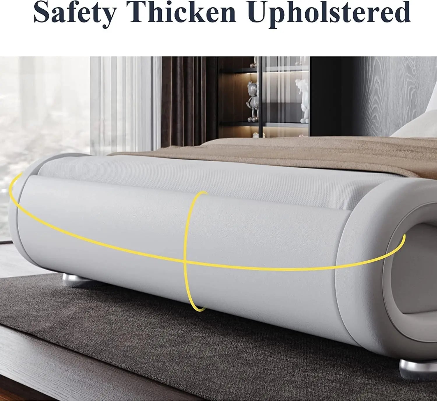 • Premium Finish: Upgrade your bedroom decor with sleek faux leather white finish. Eco-friendly materials provide safety for all users. A peaceful and restful sleep awaits with this luxurious bed frame