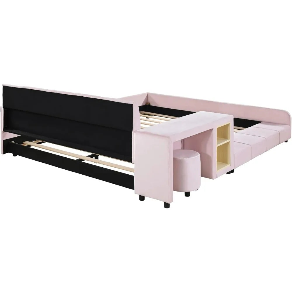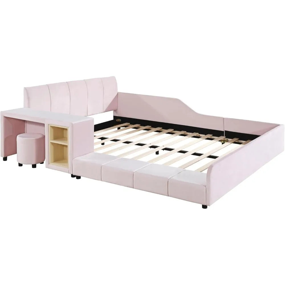 Velvet Upholstered Grounded Platform Bed,Wooden Queen Size Mother & Child FrameKids Furniture Floor Platform Bed