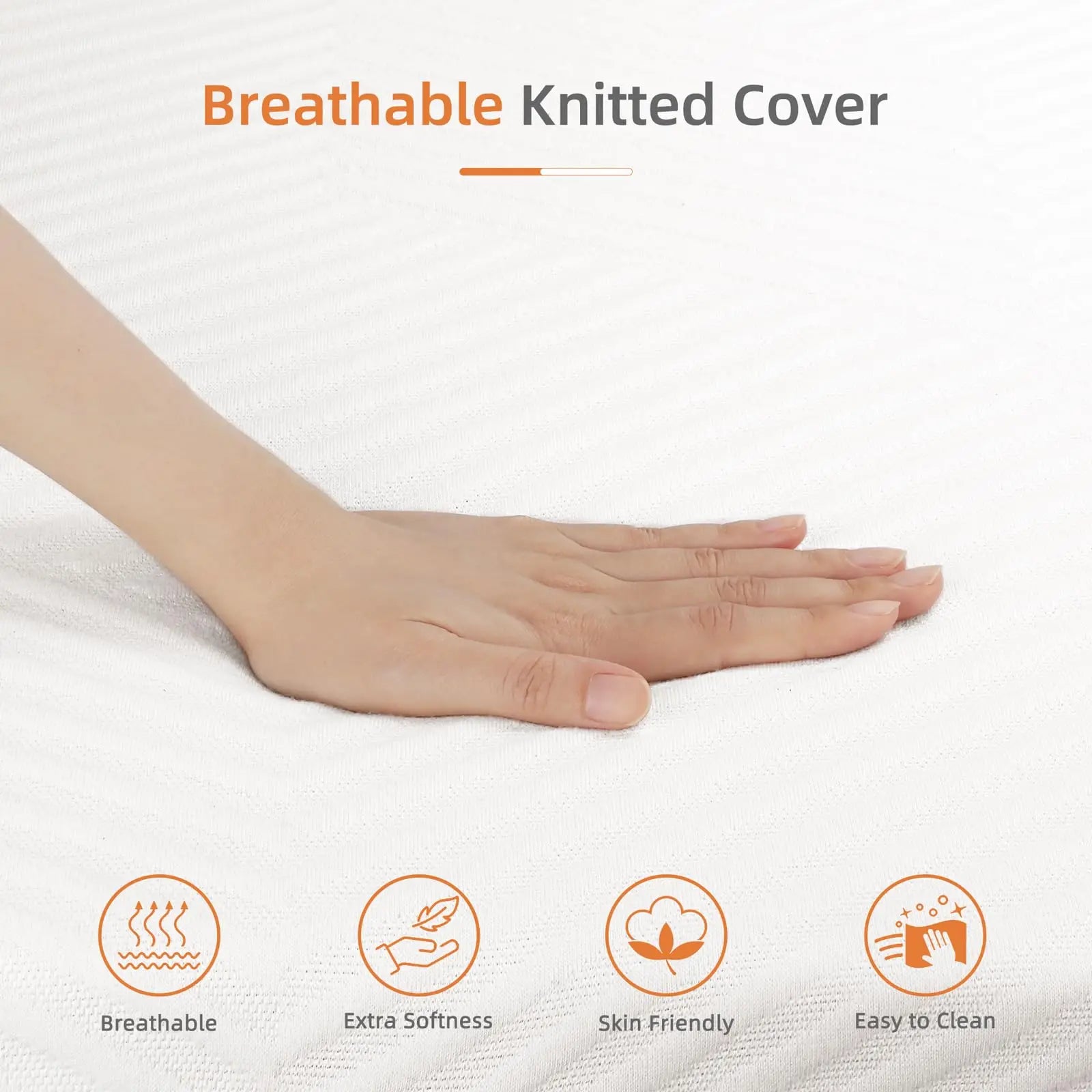 3.BREATHABLE & REMOVABLE COVER: The top layer of our memory foam mattress is a knitted fabric cover that is skin-friendly and comfortable for an ideal sleeping environment. The breathable cover of this foam mattress provides you with a clean and comfortable surface. Coming with the smooth zipper, the cover of this mattress can be quickly removed for easy washing