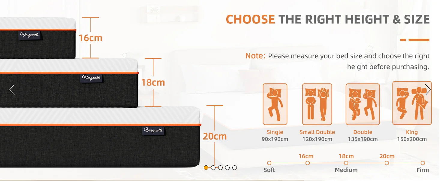 Vesgantti 16CM Gel Memory Foam Single Mattress for Cool Sleep & Pressure Relief - Medium