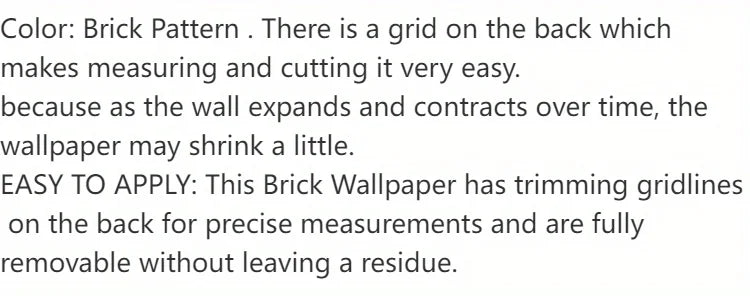 Material: PVC self adhesive waterproof Stone Brick Wallpaper