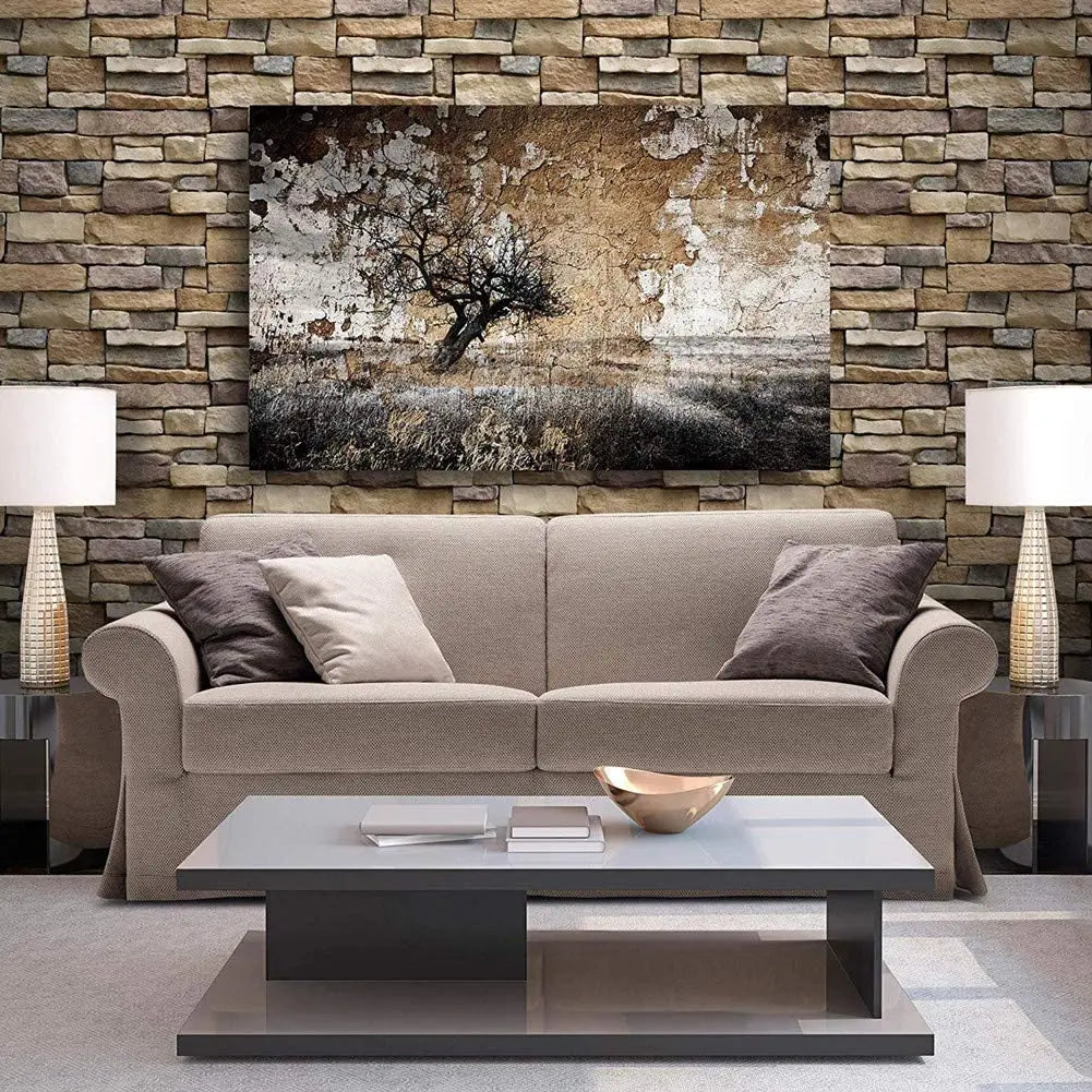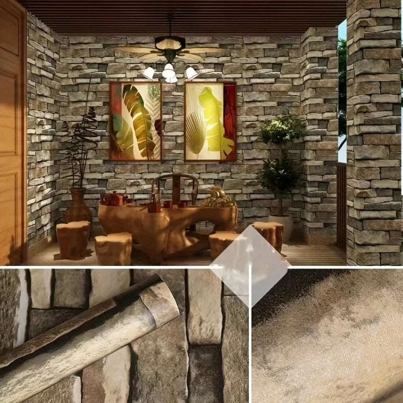 Waterproof Self-Adhesive Stone Brick Wallpaper for Living Room Kitchen Bedroom Removable Stickers for Fall Aesthetic Wall Decor