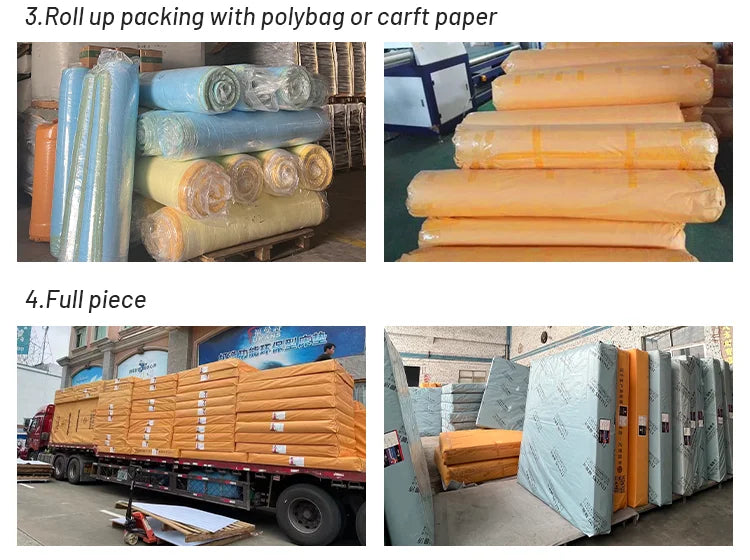 Roll in a box/ flat compressed on pallet/roll in a bag/whole piece packing
