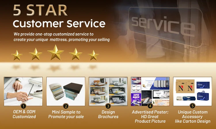 Our products are mid-to-high-end, main products include rolled mattress,latex mattress,memory foam mattress,fully foam matrtess,coconut mattress,tri-foldable mattress,water mattress,smart mattress,bonnel spring mattress,continous mattress,leather bed,fabric bed,storage bed,nightstands. also other home furniture like pillow, sofa and table can be matching provided.