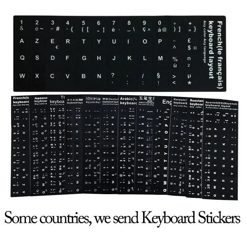 -- Our keyboard is QWERTY English standard version, but we will send keyboard stickers of other languages below as a gift. If you need it, just leave us a message. Keyboard stickers: Russian, Spanish, French, German, Italian, Hebrew, Arabic, Turkish, Thai, Japanese, Korean.