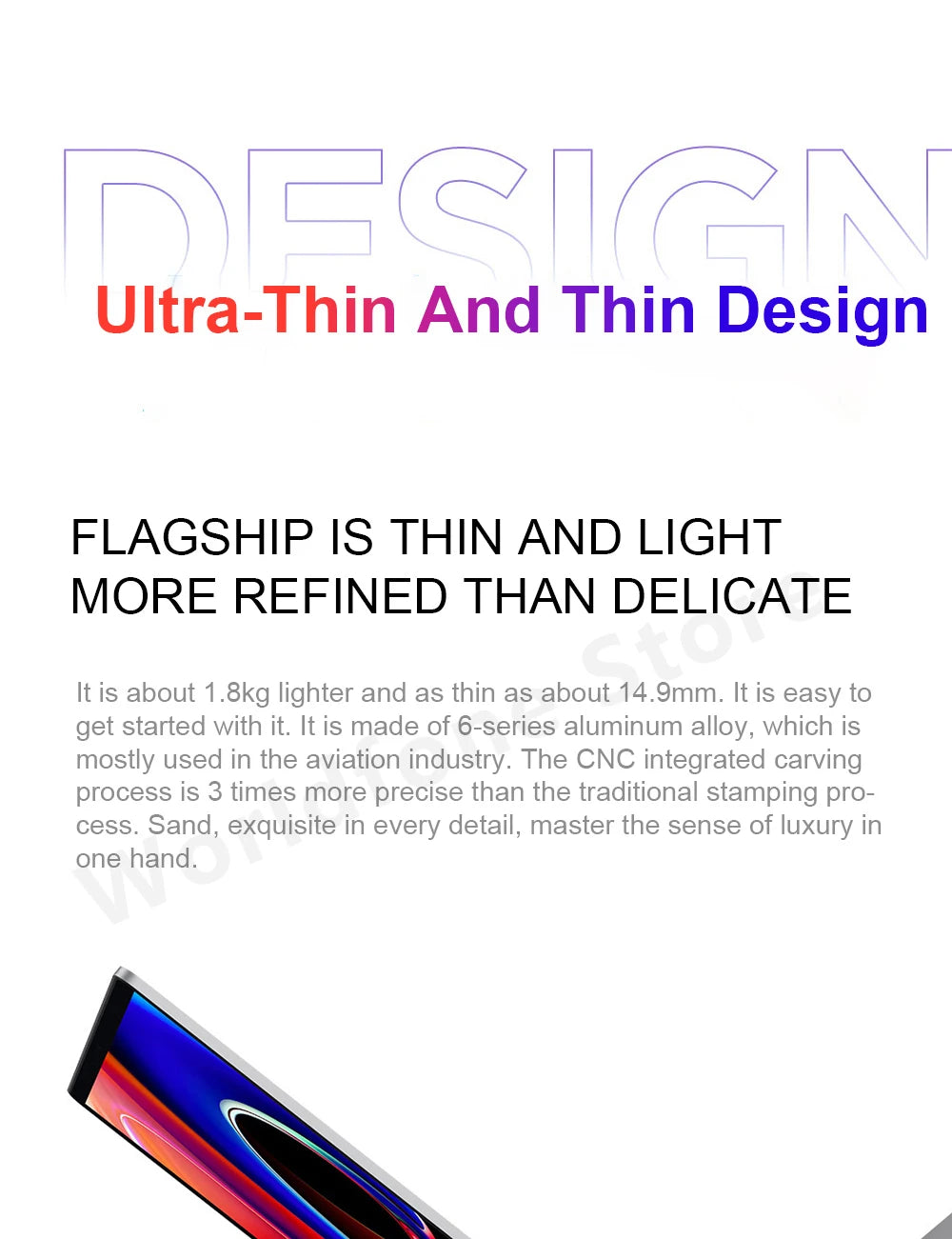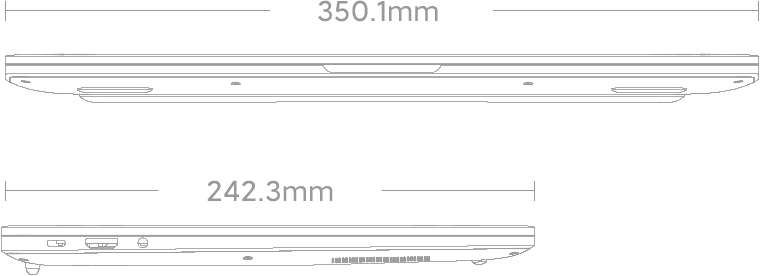 350.1mm * 242.3mm * thin to about 14.9mm*, light about 1.78kg (including battery, the specific weight is based on the product delivery configuration)