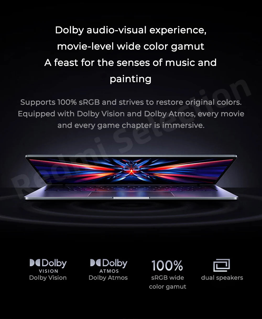 Supports 100% sRGB and strives to restore original colors.Equipped with Dolby Vision and Dolby Atmos, every movie and every game chapter is immersive.