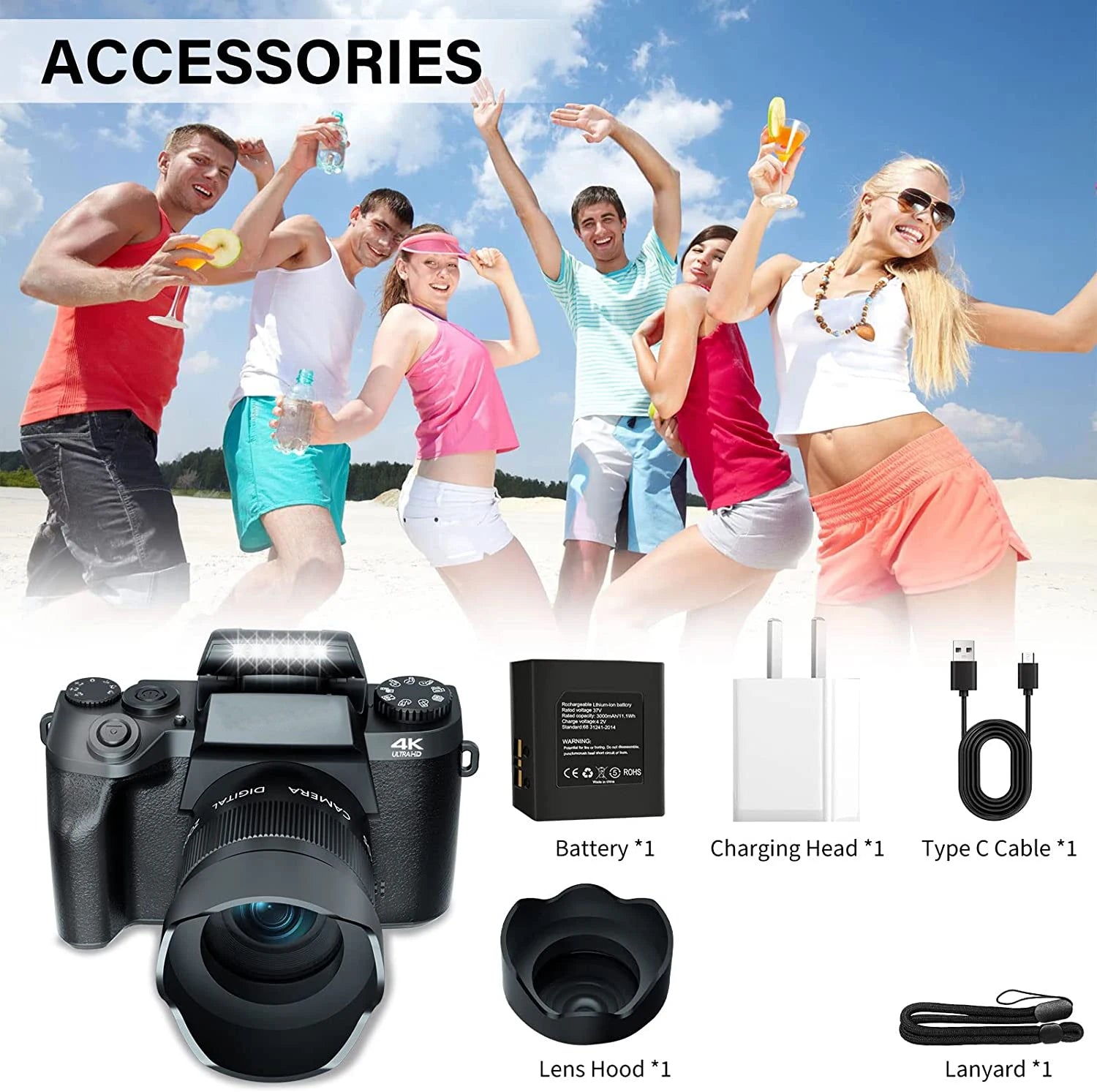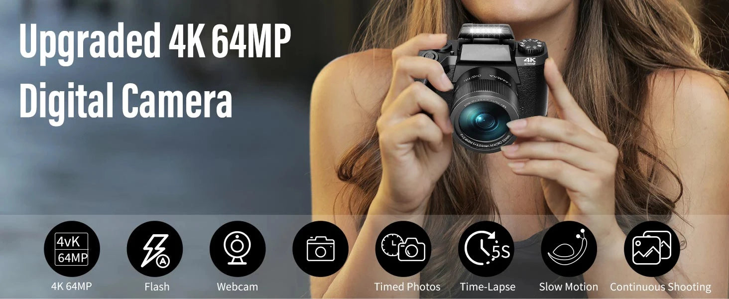 16X Zoom 64MP DSLR HD WIFI Cameras 4.0 Inch Touchscreen 4K Digital Camera for Photography Video Live Streaming Vlogging