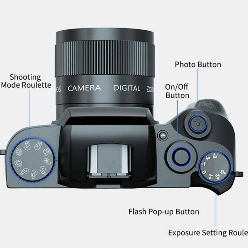 2025 16X Zoom 64MP DSLR HD WIFI Cameras 4.0 Touchscreen 4K Digital for Tiktok Photography Video Live Streaming Vlogging