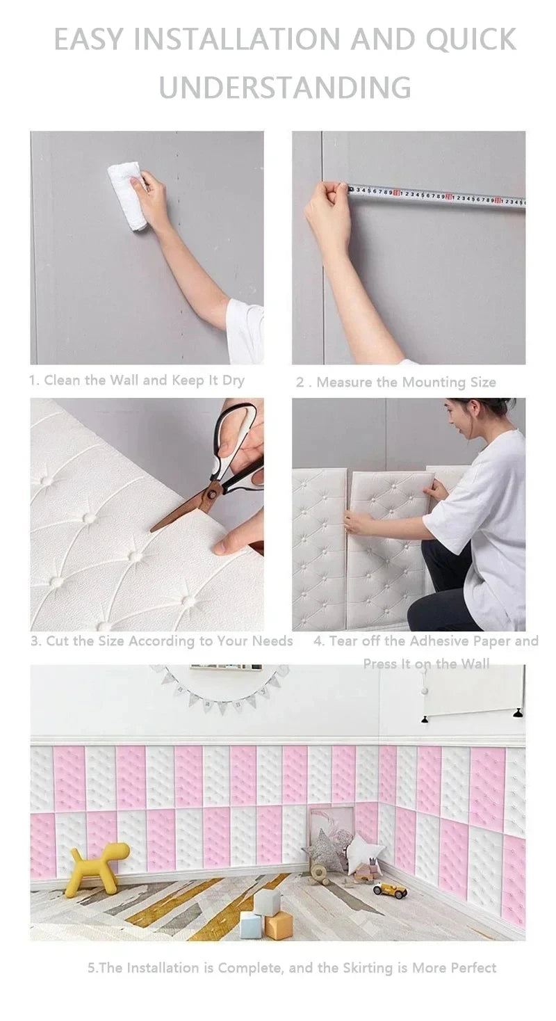 3D Wall Stickers Wallpaper Self-adhesive Thicken Tatami Anti-collision Wall Mat Pad Kids Bedroom Living Room Soft Foam Cushion