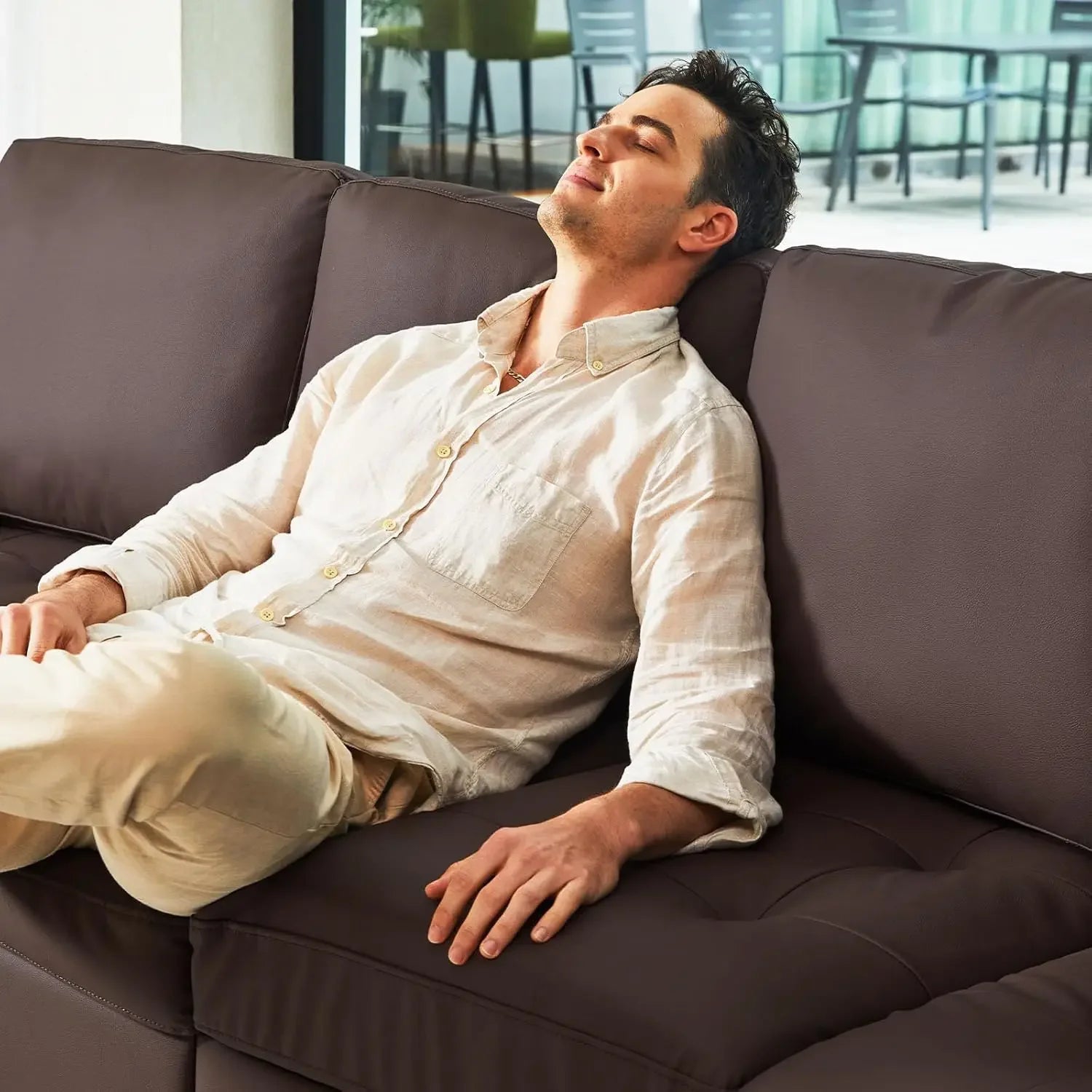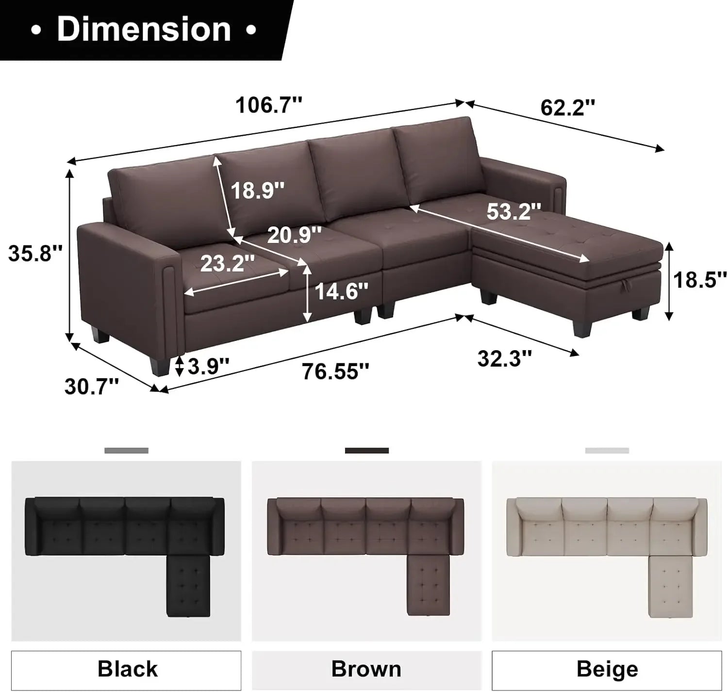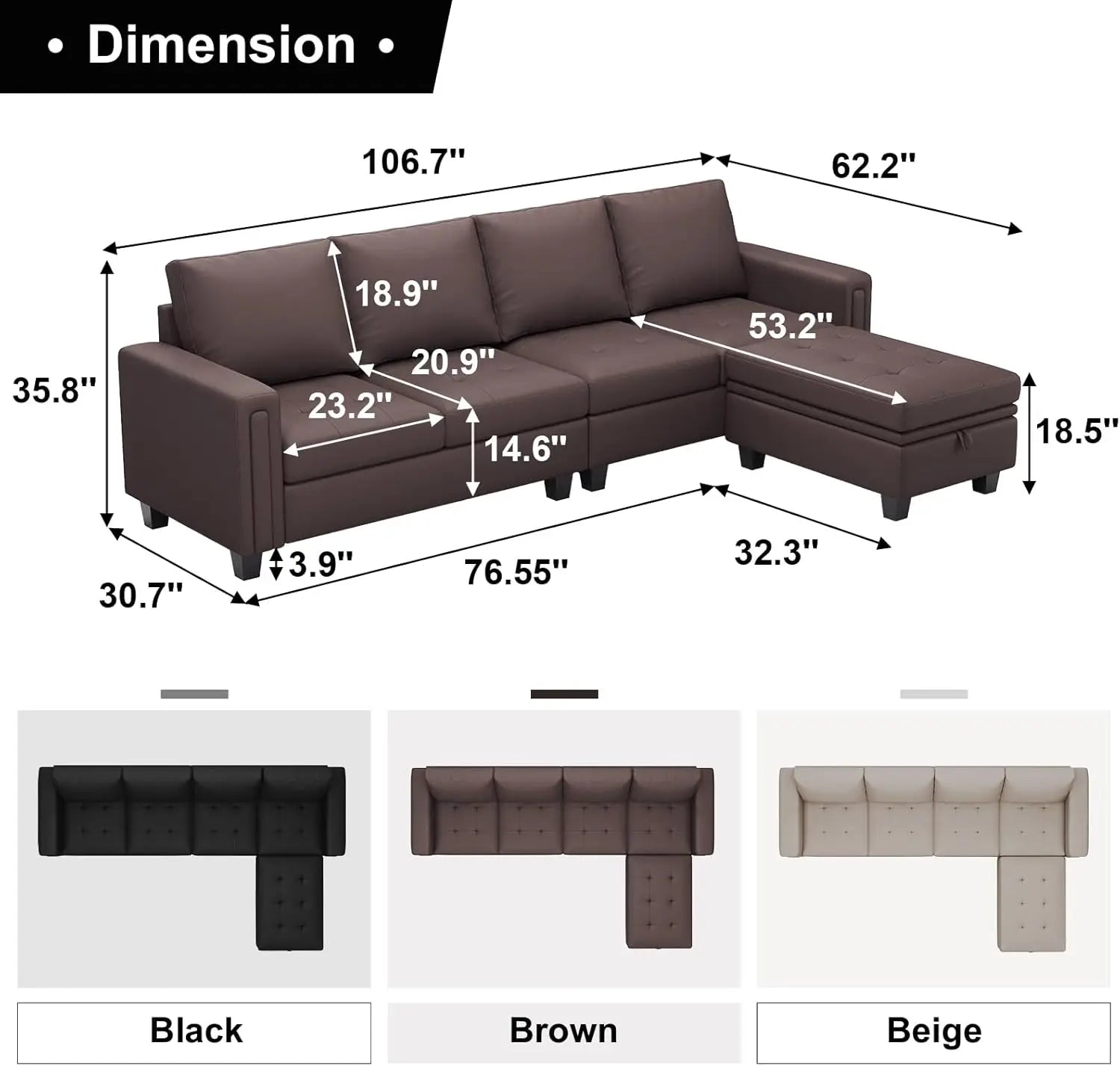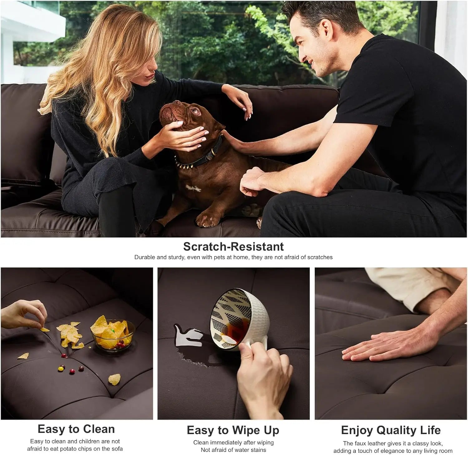 High-Quality Leather Fabric:This Sectional Sofa Is Made Of High-Quality Leather Fabric.Leather Fabric Sofas Are The Best Choice For Family Sofas. They Are Not Only Waterproof And Stain-Proof, But Also Pet-Friendly, Very Easy To Clean Pet Hair, And Very Resistant To Pet Scratching.