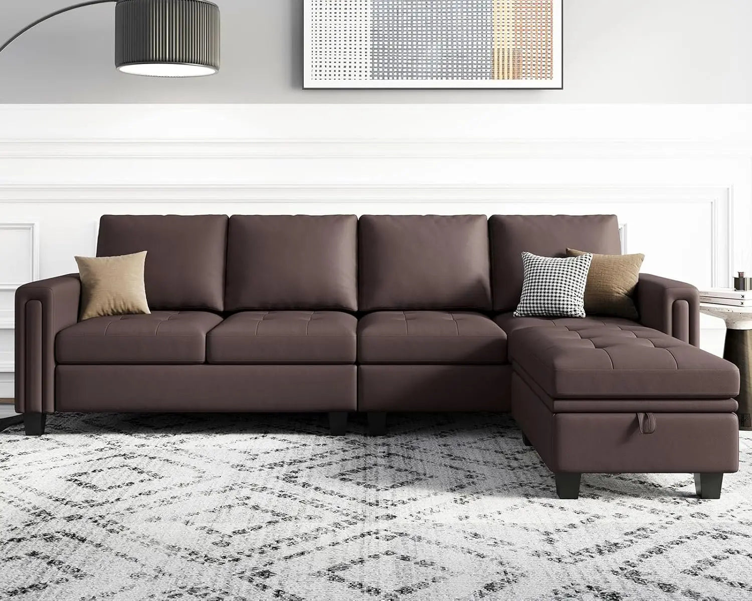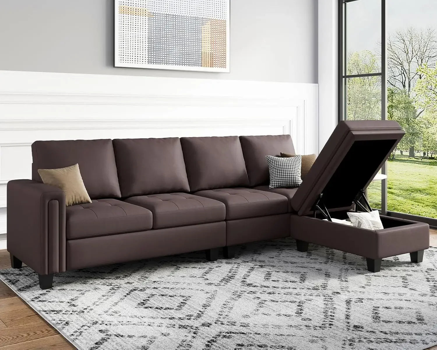Flexible And Removable Storage Ottoman:The Ottoman Of This 4-Seater Sectional Sofa Can Be Moved Freely. It Can Be Connected To The Seat Of The Sectional Couch And Used As A Chaise, Or It Can Be Used Separately From The Sofa As A Footstool And Coffee Table. It Also Has A Storage Function, Where You Can Place Some Daily Necessities To Better Organize Your Home Space.