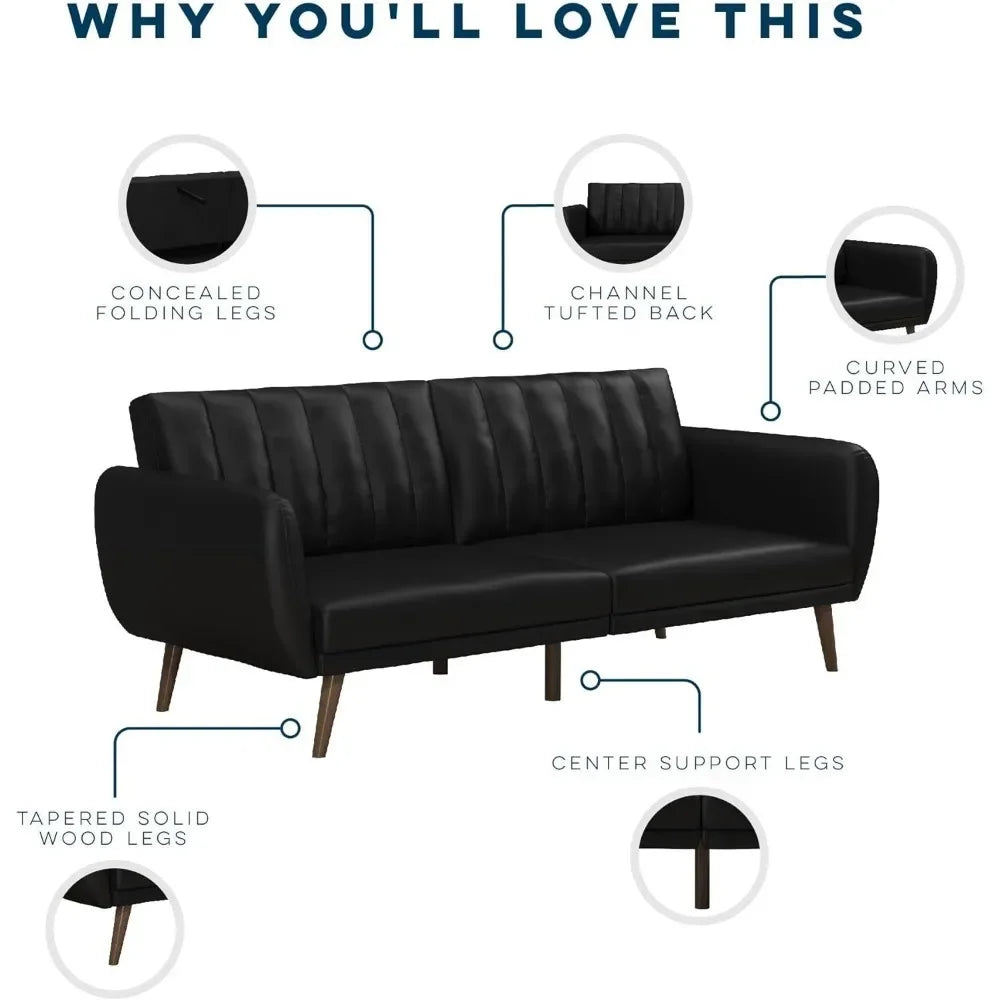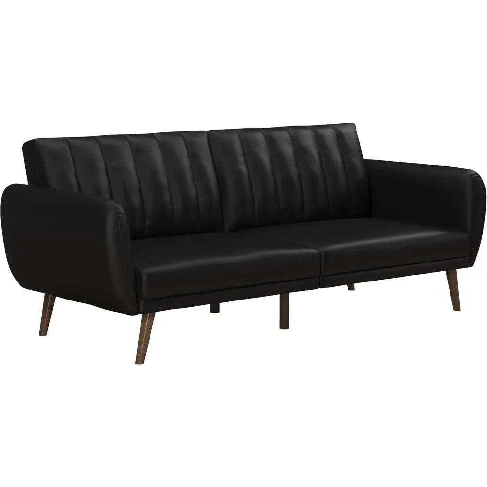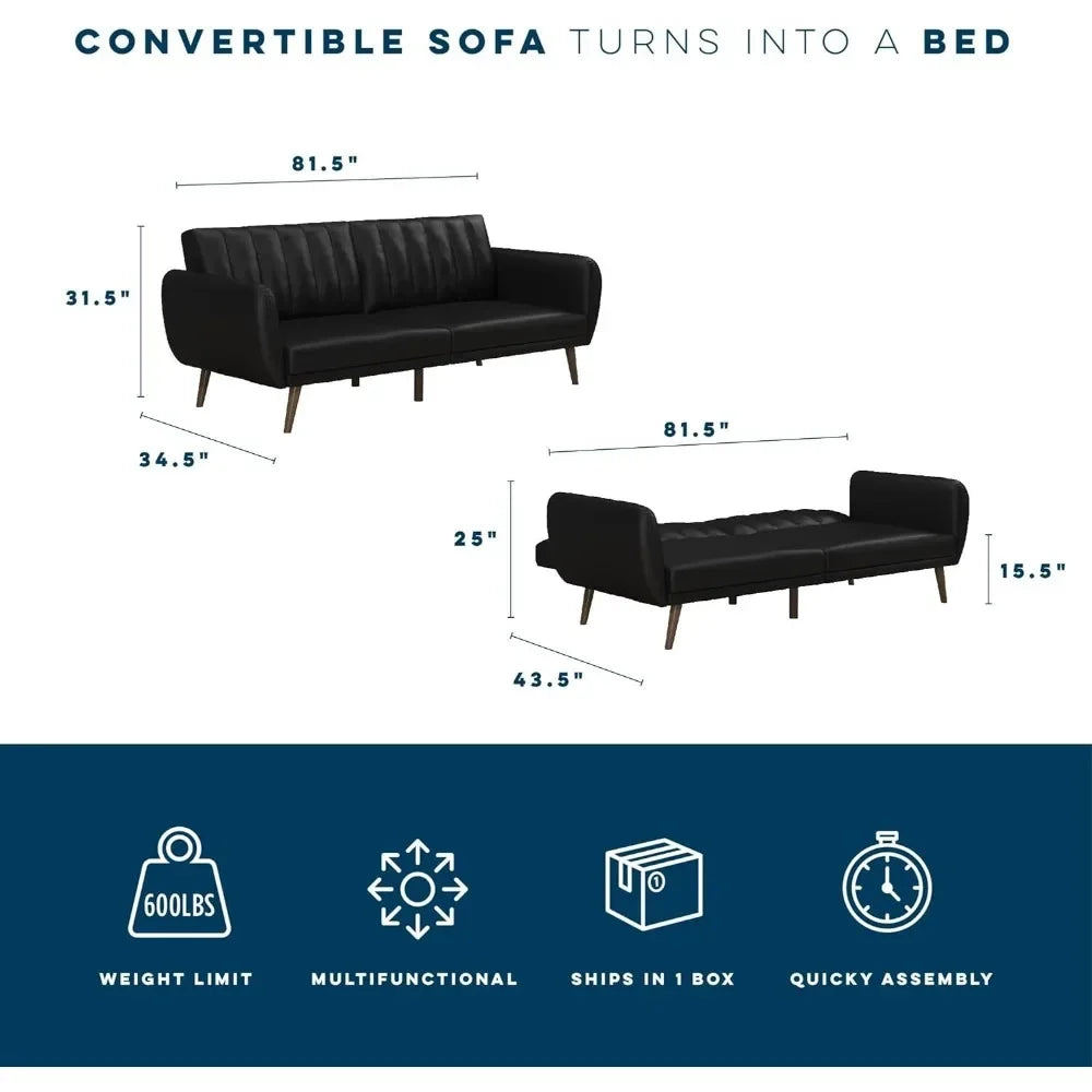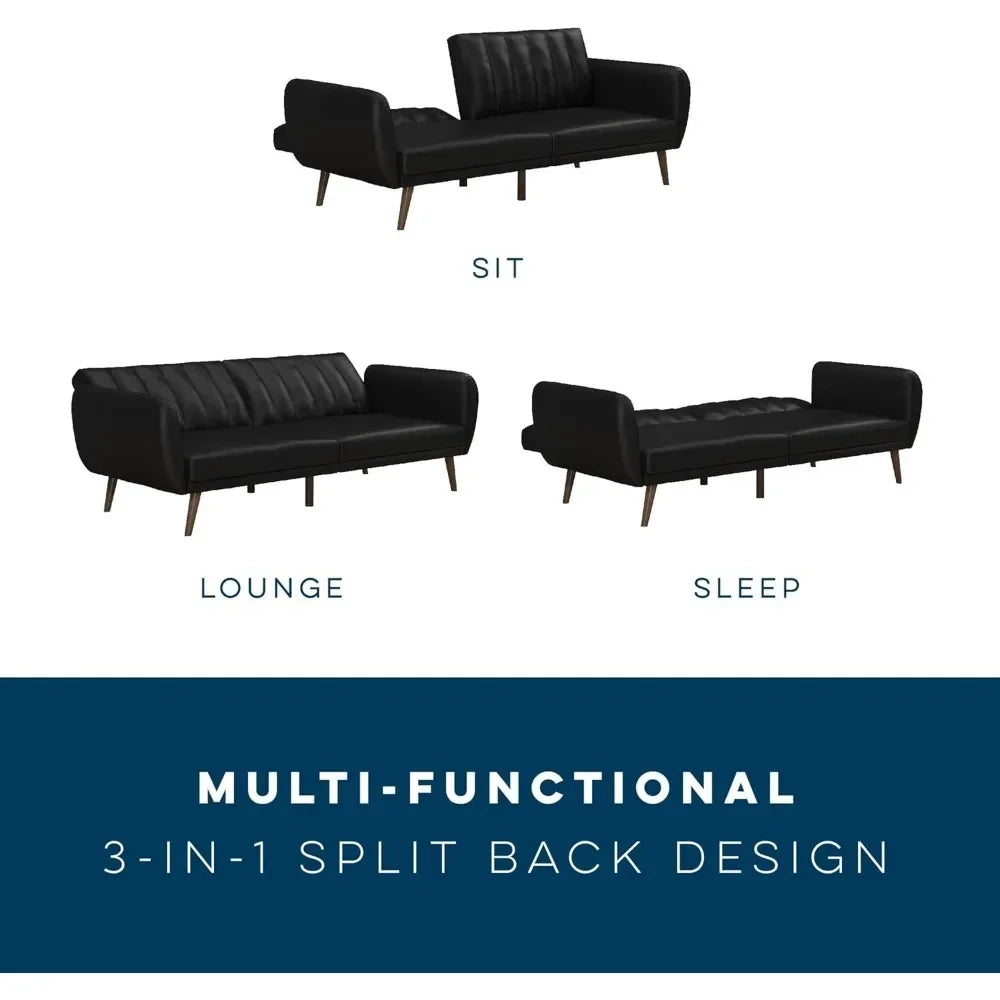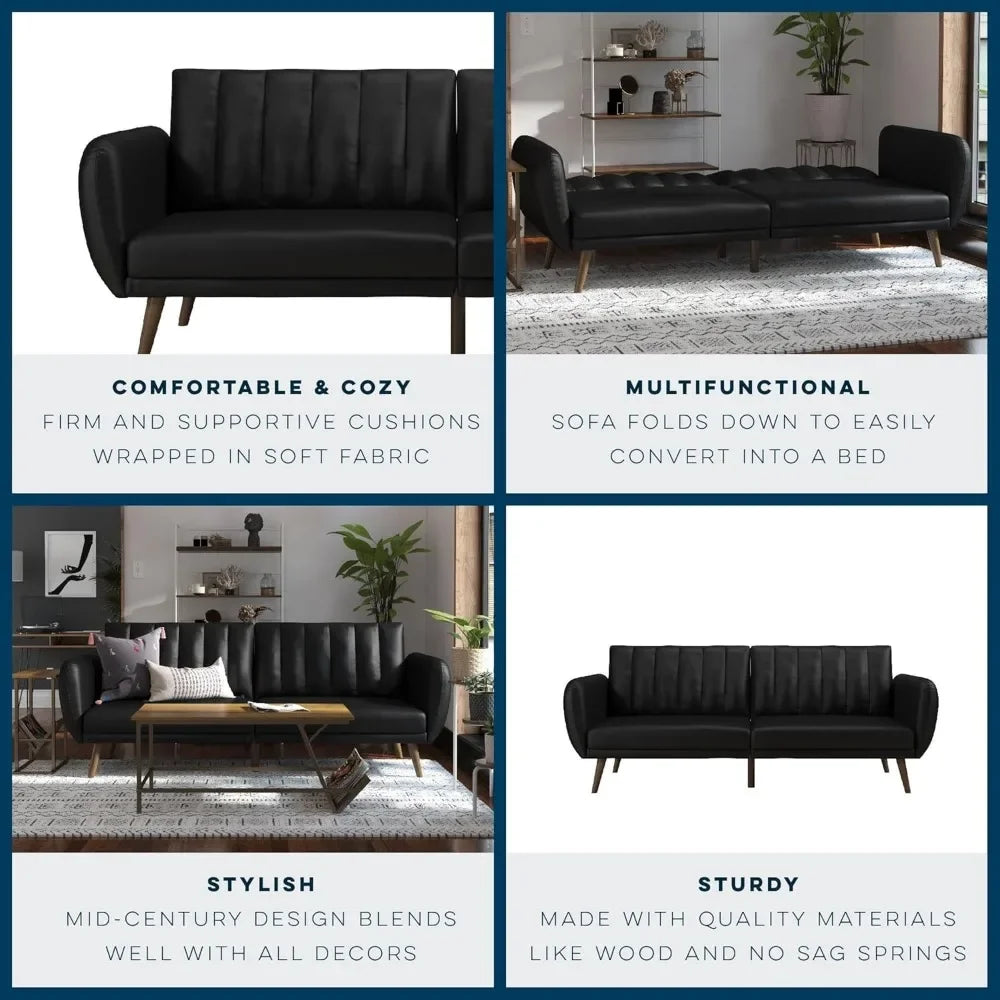 Brittany Futon Sofa Bed and Couch Sleeper, Black Faux Leather