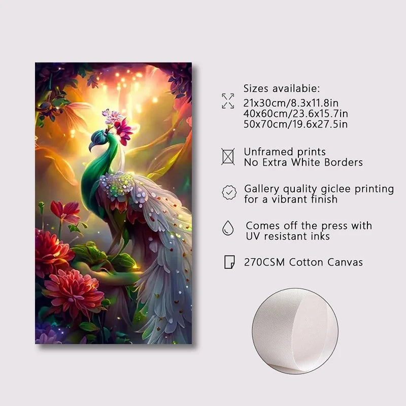 Canvas Poster Modern Art Dream Peacock Flower Landscape Bird Home Decor Ideal Gift for Bedroom Living Room Corridor Wall Decor