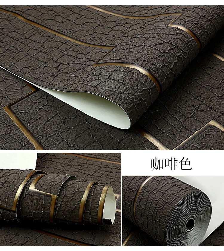 Dark Velvet Wallpaper Coffee Color 3D Thickened TV Background Wall Living Room Non-woven Non-self-adhesive Simple Wall Sticker