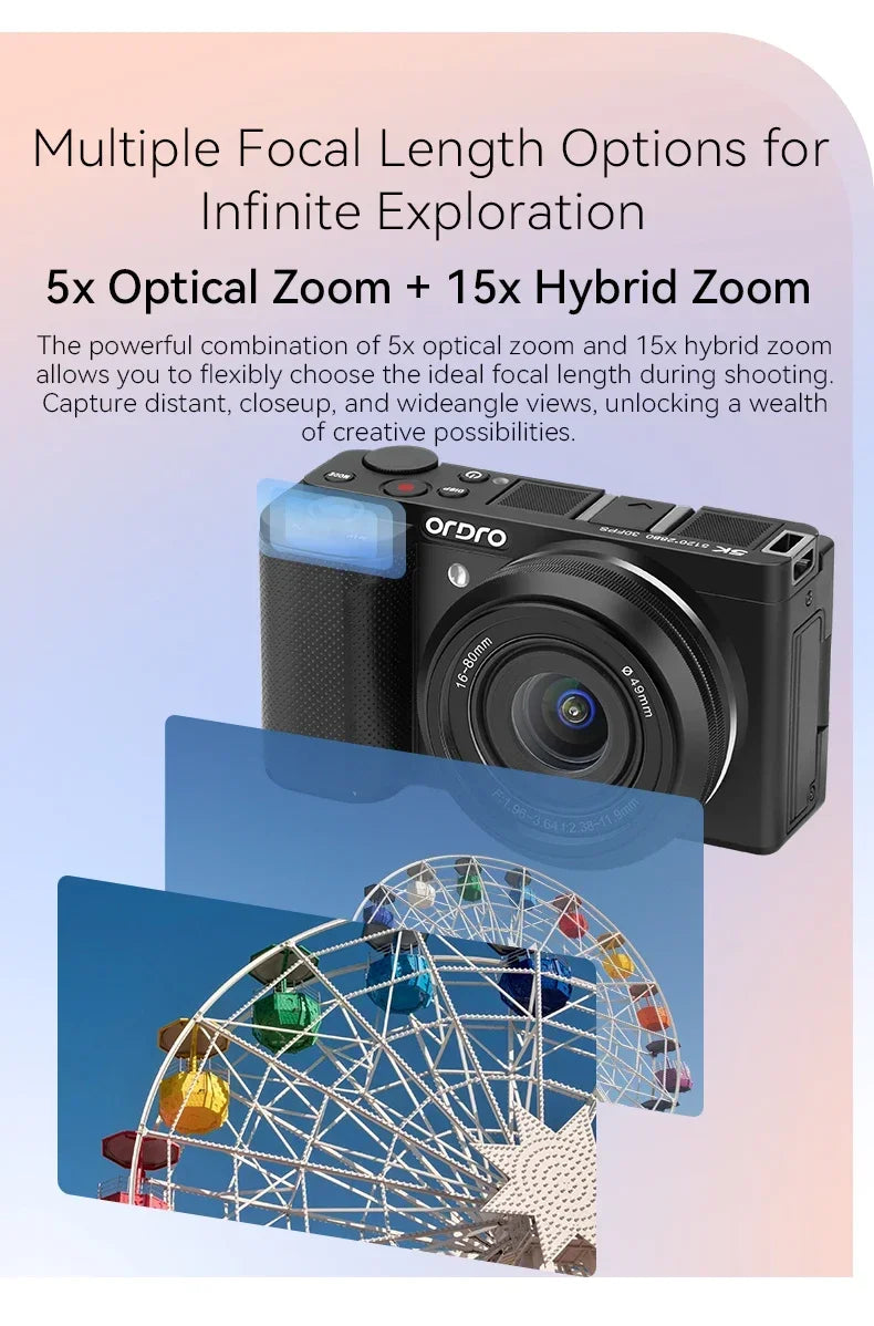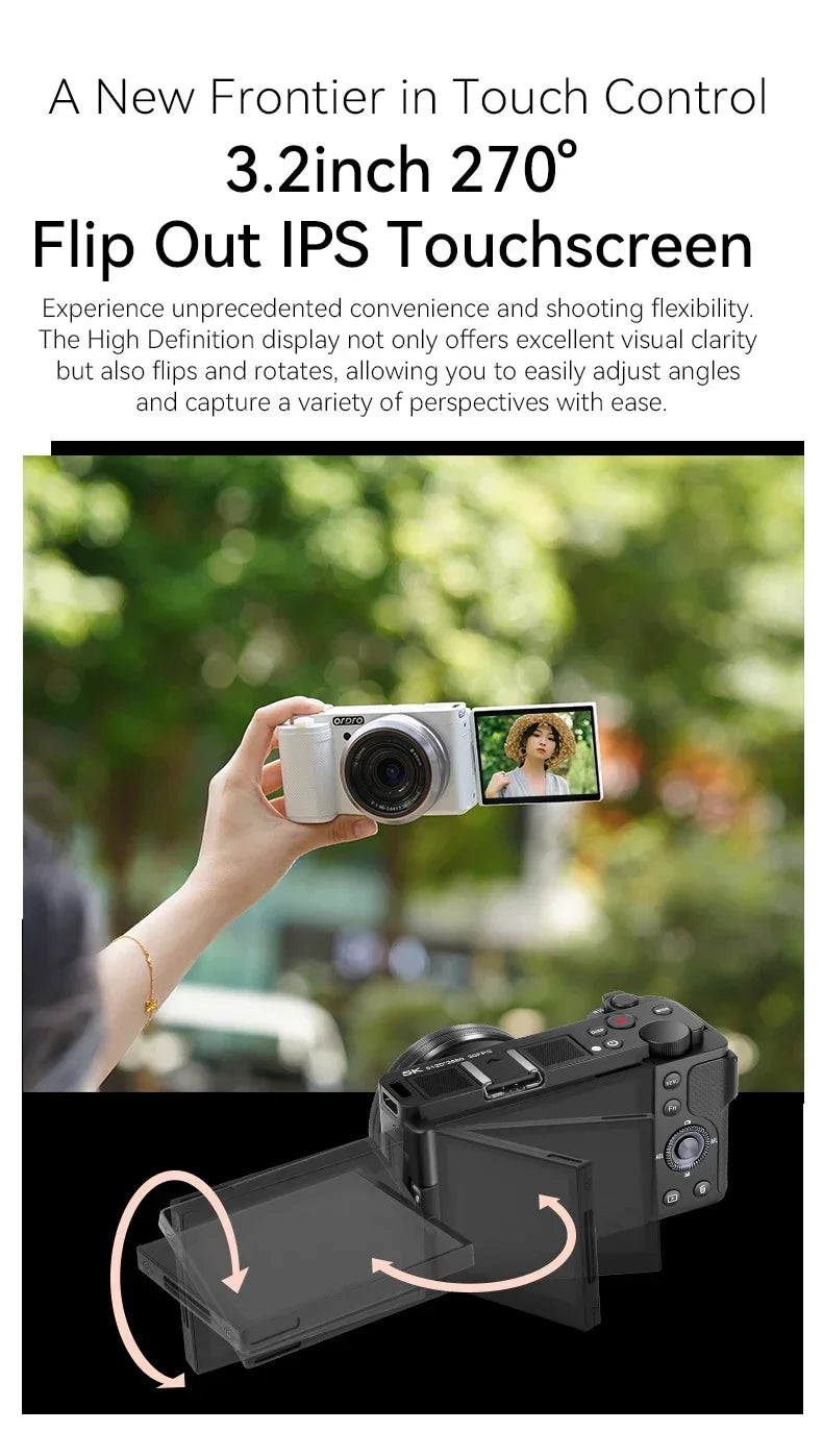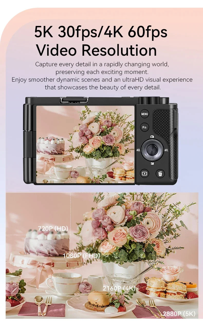 Digital Camera for Vlogging Videos with Flashlight 5X Optical Zoom 5K 30FPS 4K 60FPS AF/MF IR Rechargeable Battery G930