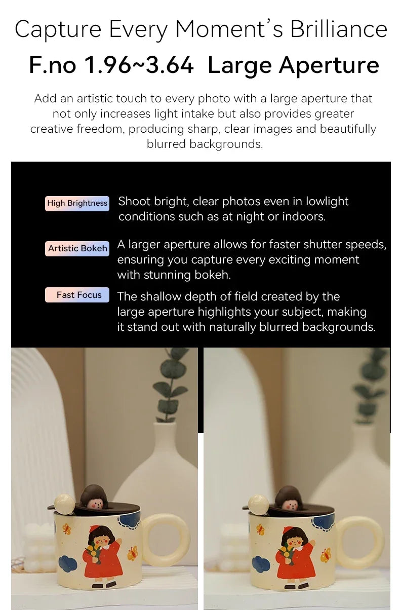 Aperture: f: 2.38 mm~11.9 mm, F.no 1.96~3.64(Automatic aperture)